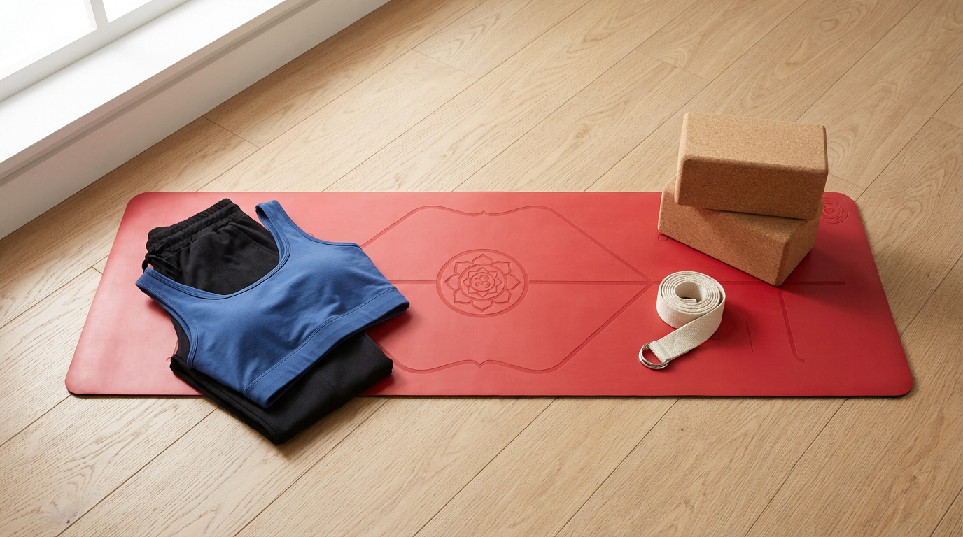 Um deine Praxis angenehm und sicher zu gestalten, ist die richtige Ausrüstung wichtig. Eine rutschfeste Yoga-Matte ist essentiell für die dynamischen Übergänge und stabilen Haltungen im Ashtanga. Achte darauf, dass sie dir ausreichend Halt bietet, auch wenn du ins Schwitzen kommst. Dazu gehört auch bequeme Yoga-Bekleidung, die dir volle Bewegungsfreiheit ermöglicht und nicht einengt. Eventuell können auch Yoga-Props wie Blöcke oder Gurte hilfreich sein, um bestimmte Posen anzupassen und dich optimal zu unterstützen, besonders am Anfang deiner Reise.