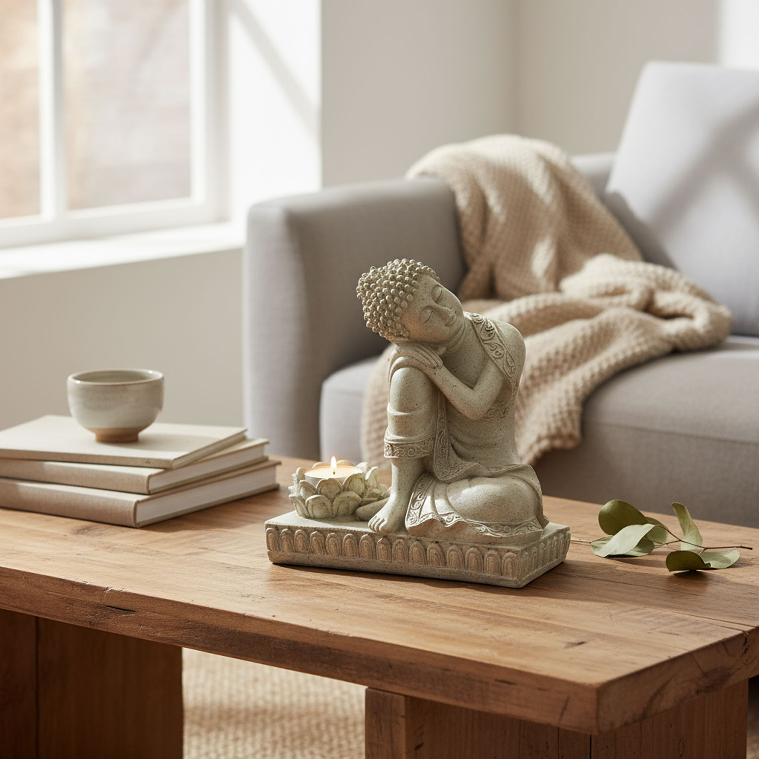Der Lotus wird hell und der Raum atmet aus. Das steingraue Finish fügt sich unaufgeregt ein auf dem Regal am Lieblingsplatz oder neben der Matte. Mit jedem Blick kehrt der Fokus zurück ruhig klar und ein wenig leichter. Ein kleines Licht das den Tag rund macht.