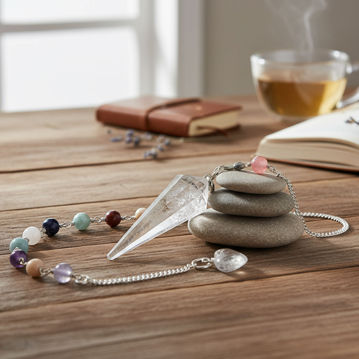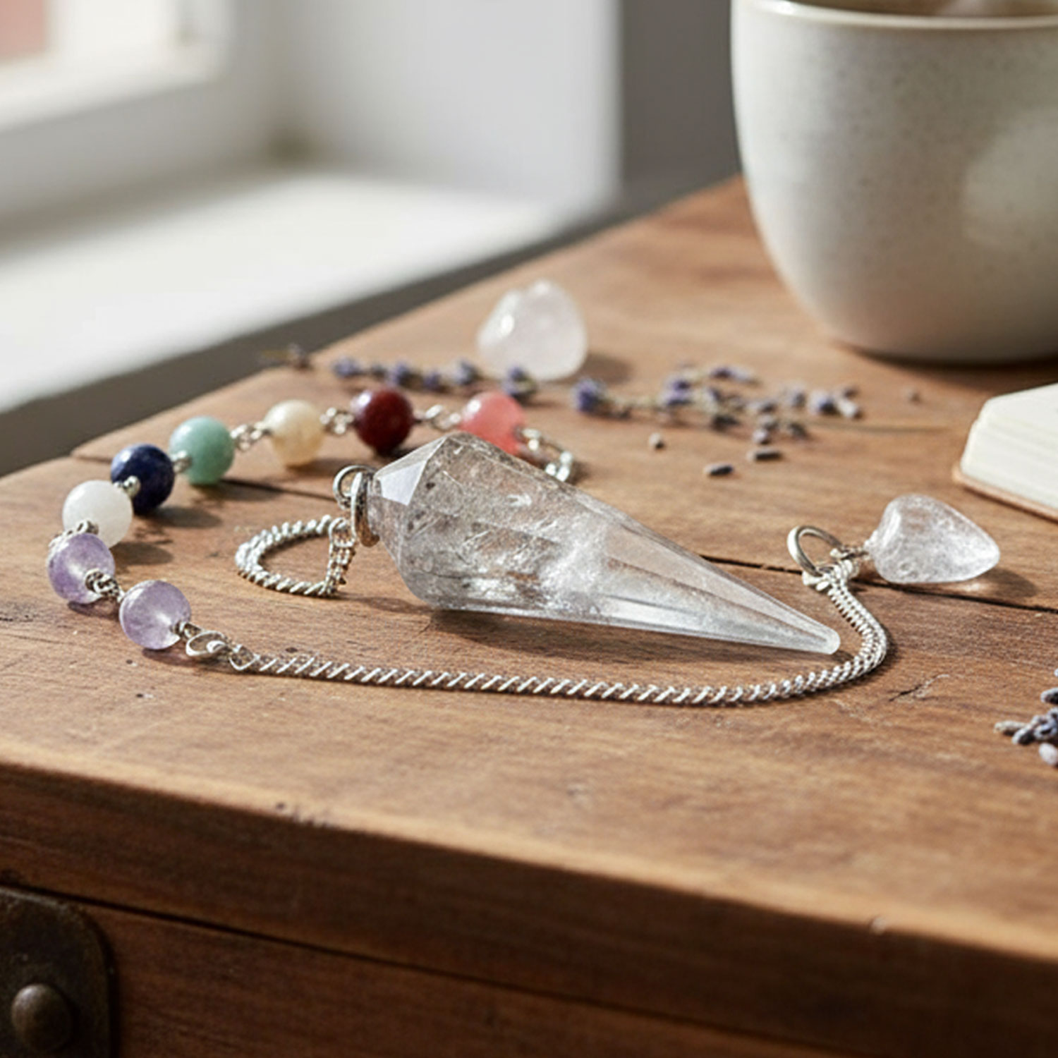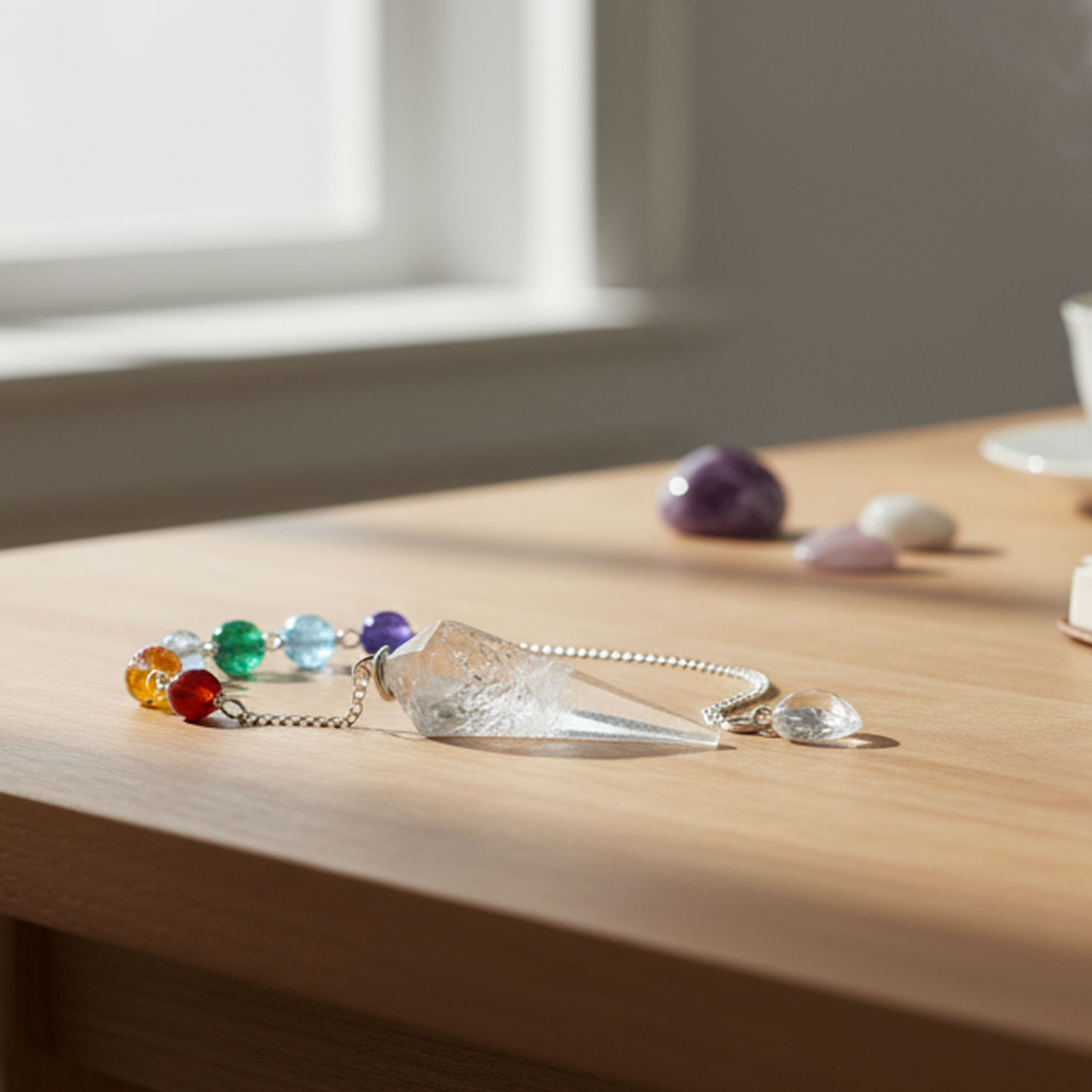 Chakra Halbedelstein Pendel aus Bergkristall