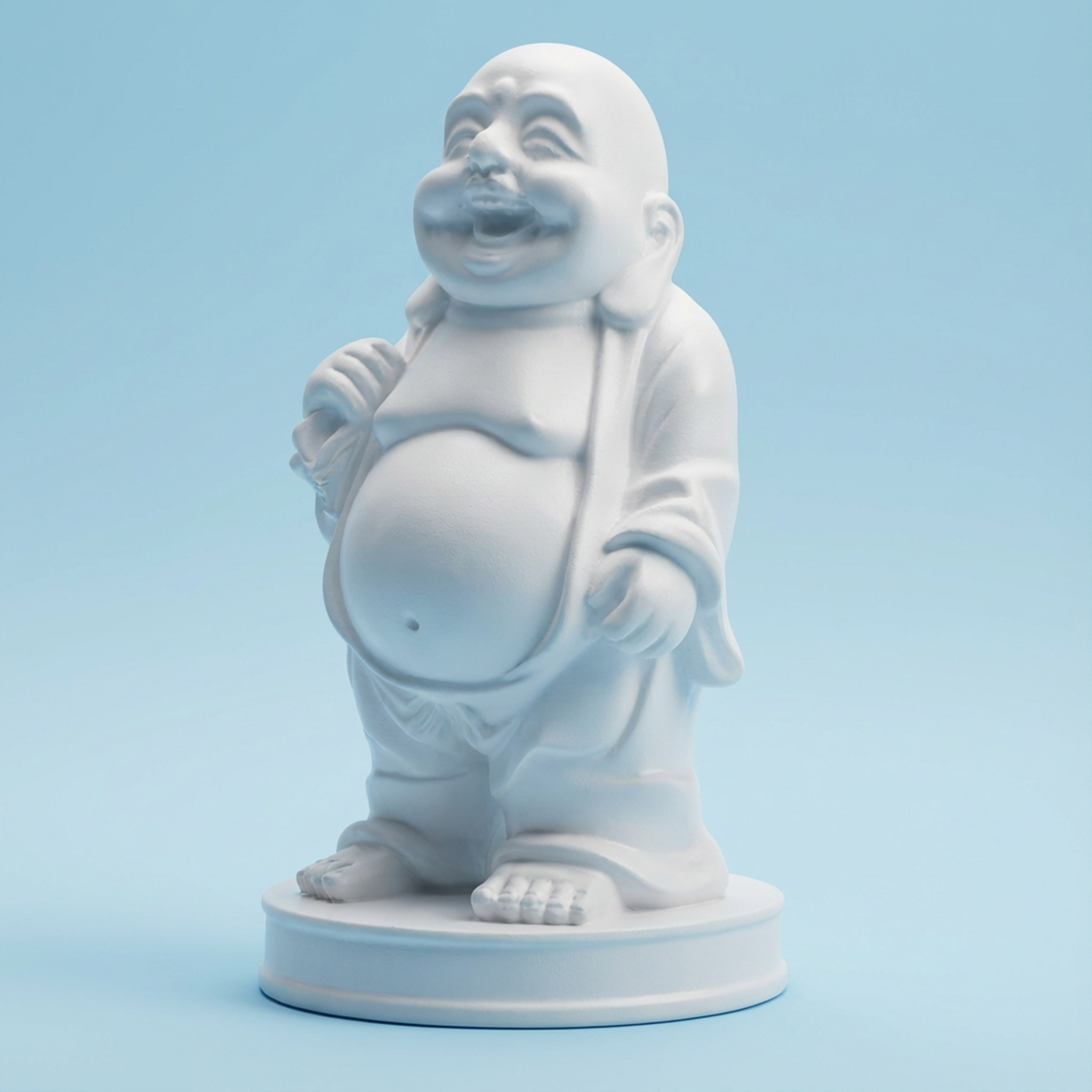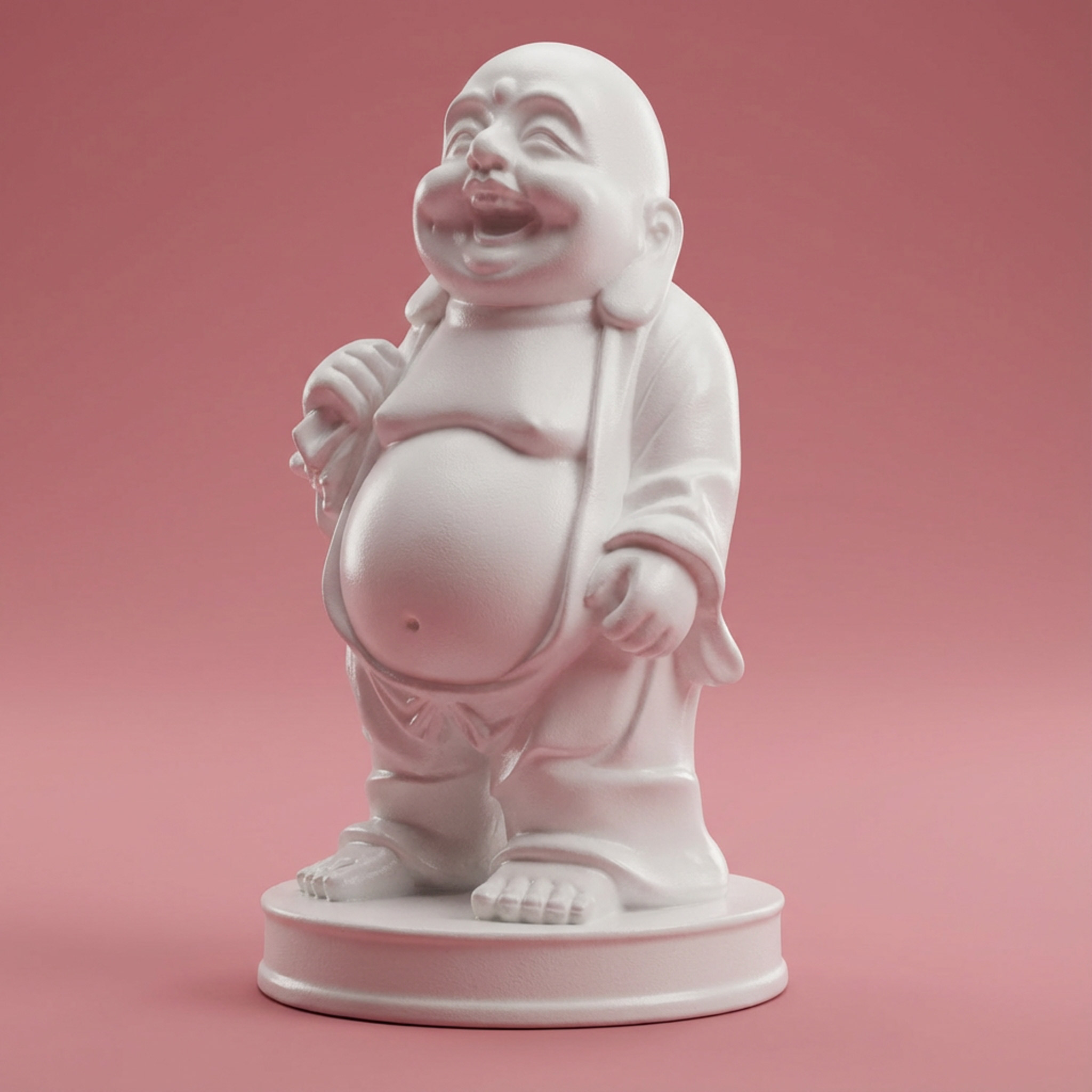 Happy Buddha Statue aus Polyresin in reinem Weiß