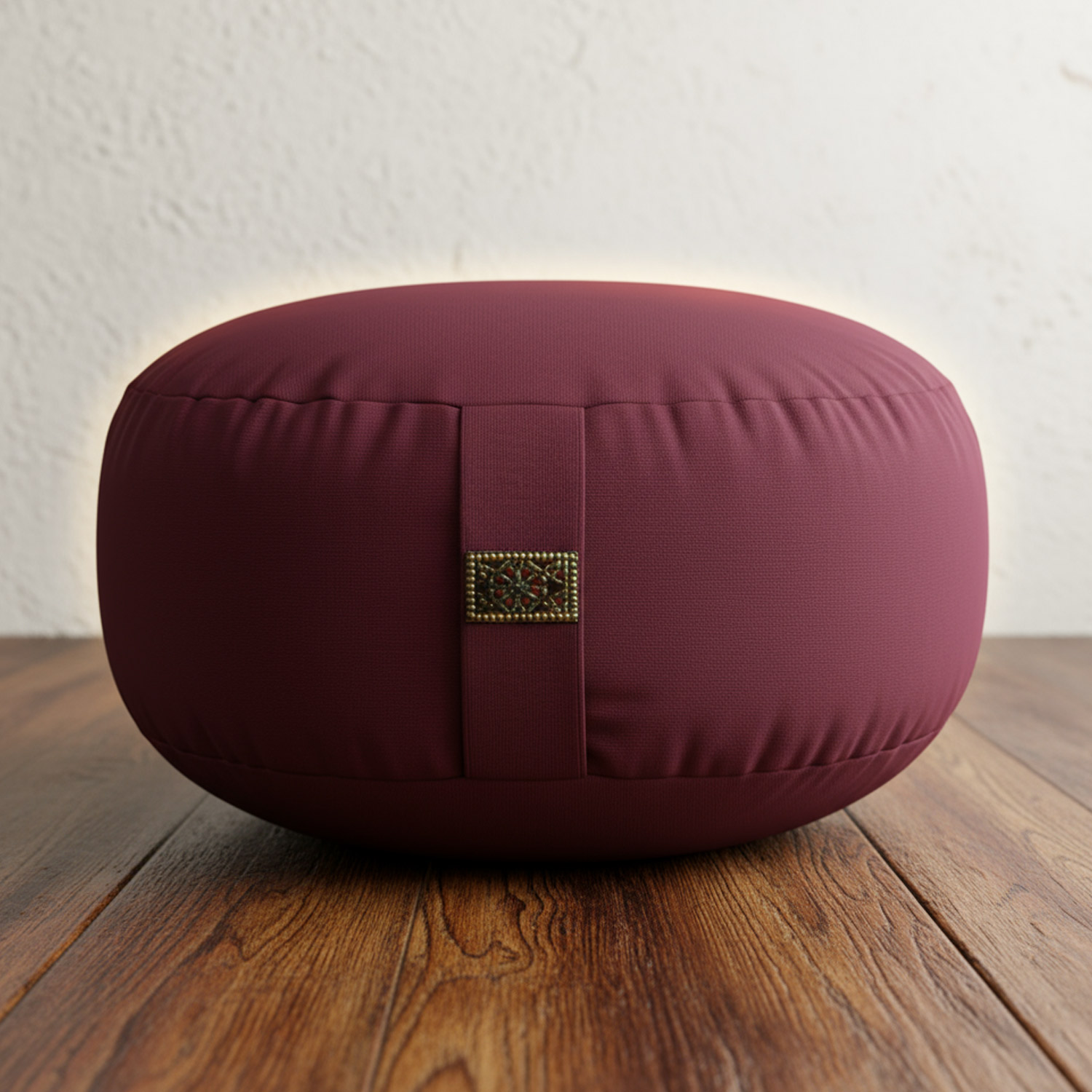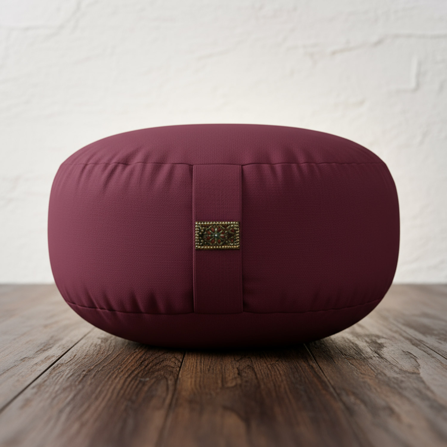 Abendliche Ruhe. Das tiefe Aubergine bringt Gelassenheit ins Setting – du sitzt stabil, Rücken wird lang, der Atem wird gleichmäßig.
