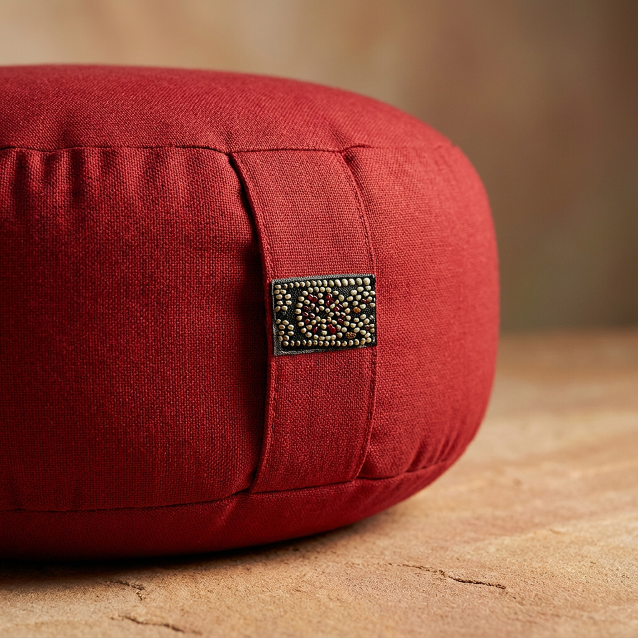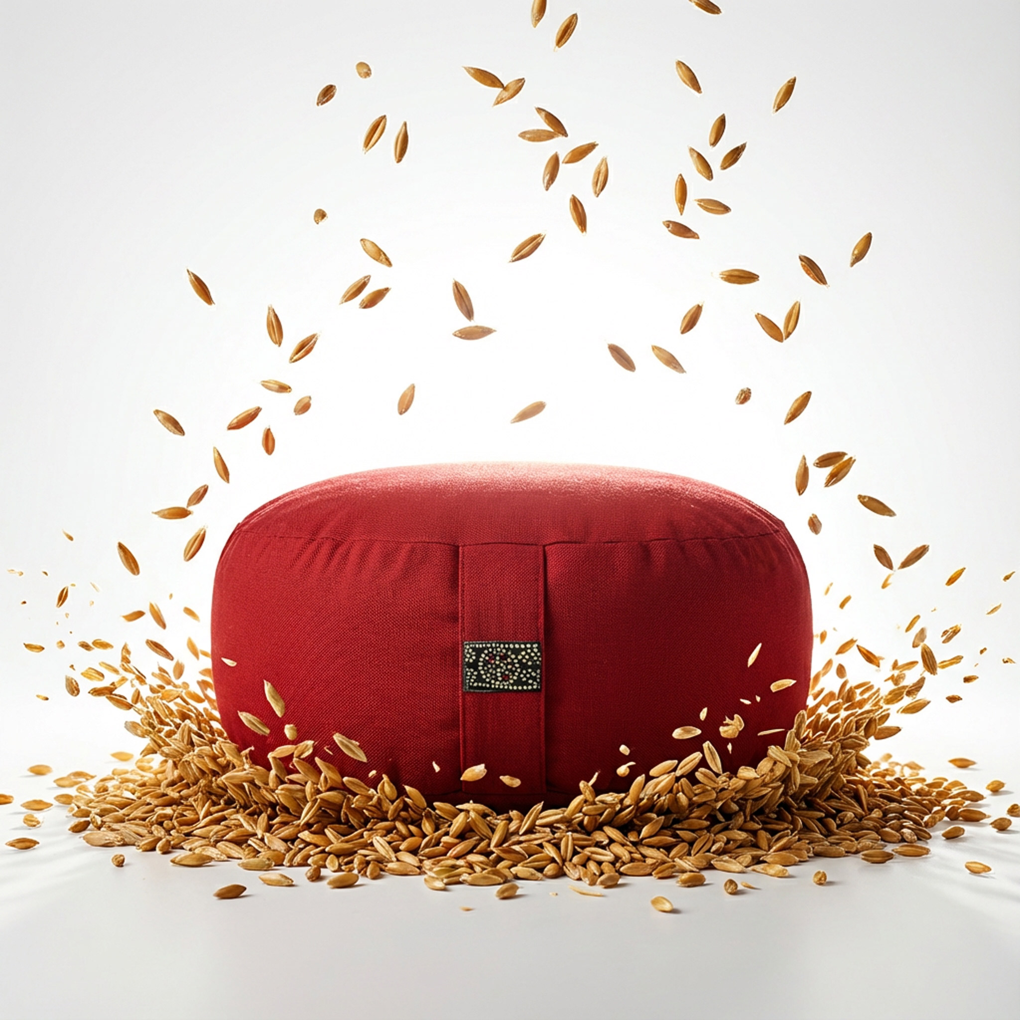 Das Yogakissen Basic Rot setzt einen klaren, warmen Akzent in deinem Raum: Ø 33 cm, Sitzhöhe 17 cm und ein robuster, waschbarer Bio-Baumwollbezug mit Tragegriff. Als Füllung verwenden wir je nach Verfügbarkeit Bio-Dinkelspelzen oder Buchweizenschalen – stabil, sanft stützend und gut anpassbar. Gefertigt nach GOTS und OCS Blended – ideal für Zuhause und Studio.