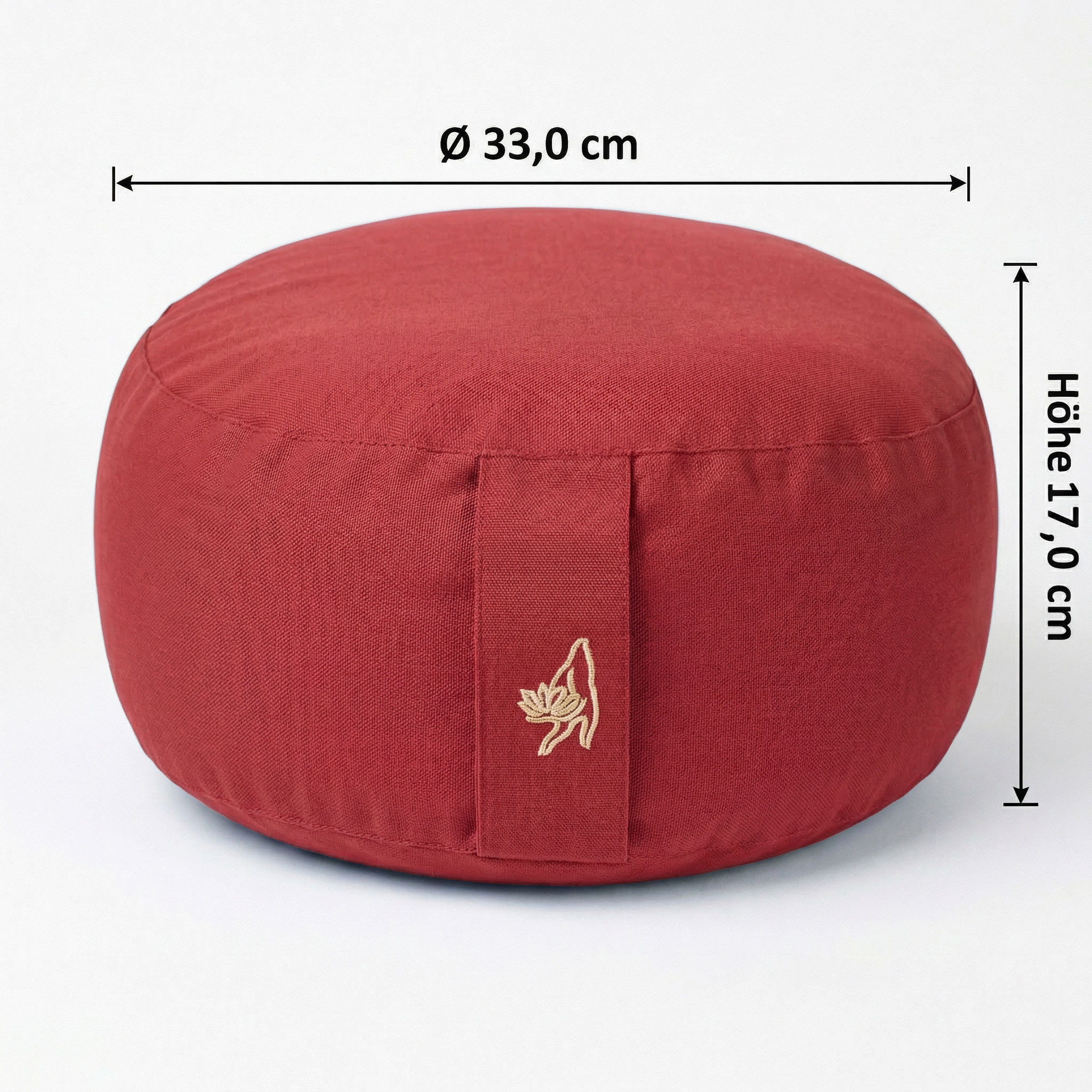Das ECO Yogakissen Basic Comfort in Rot ist ein rundes Yogakissen und Meditationskissen aus Bio-Baumwolle mit Füllung aus Bio-Dinkelspelz (kbA). Mit einer Sitzfläche von Ø 33 cm und einer Sitzhöhe von ca. 14–17 cm unterstützt es eine angenehme, aufrechte Sitzposition bei Meditation, Pranayama und ruhigen Yoga-Sequenzen.