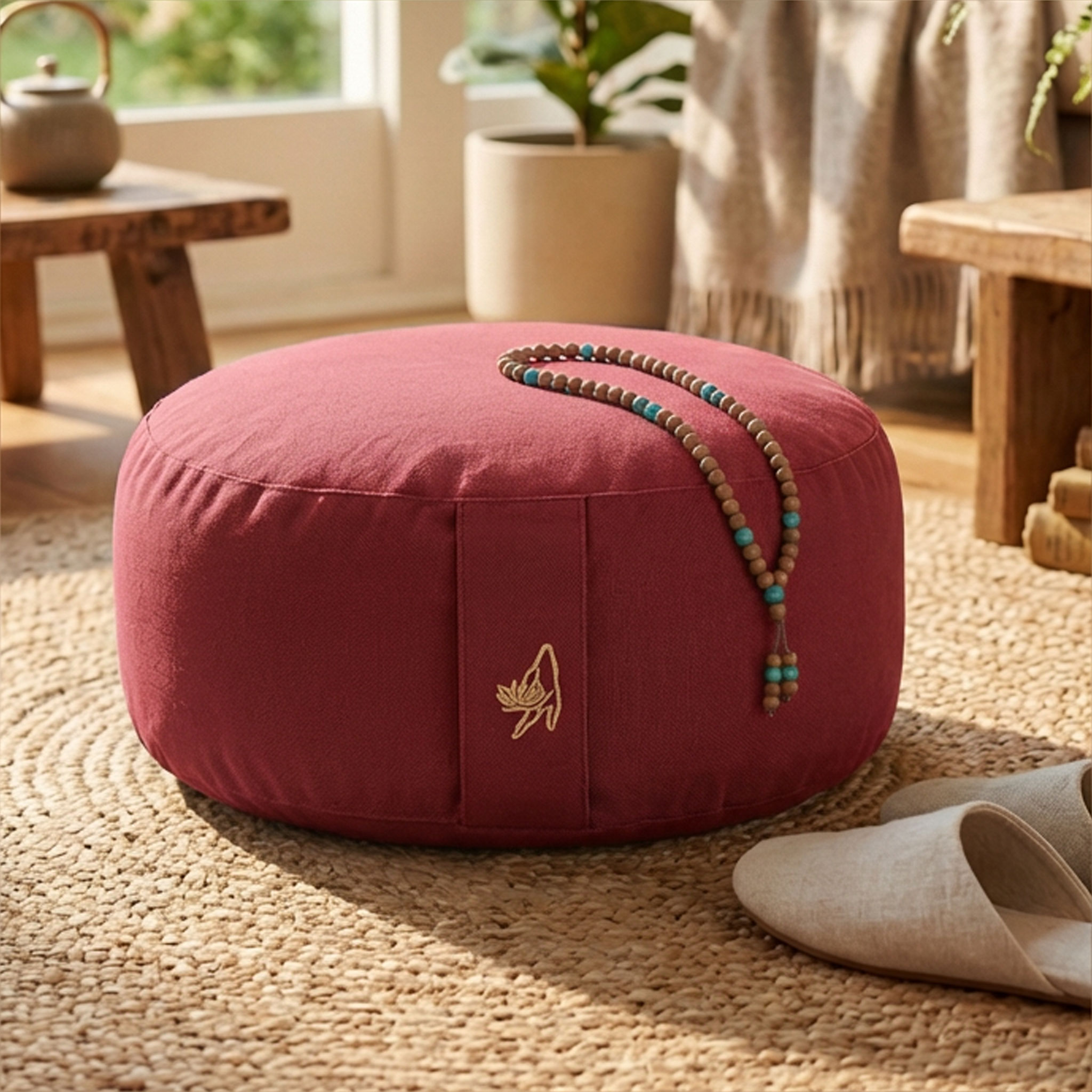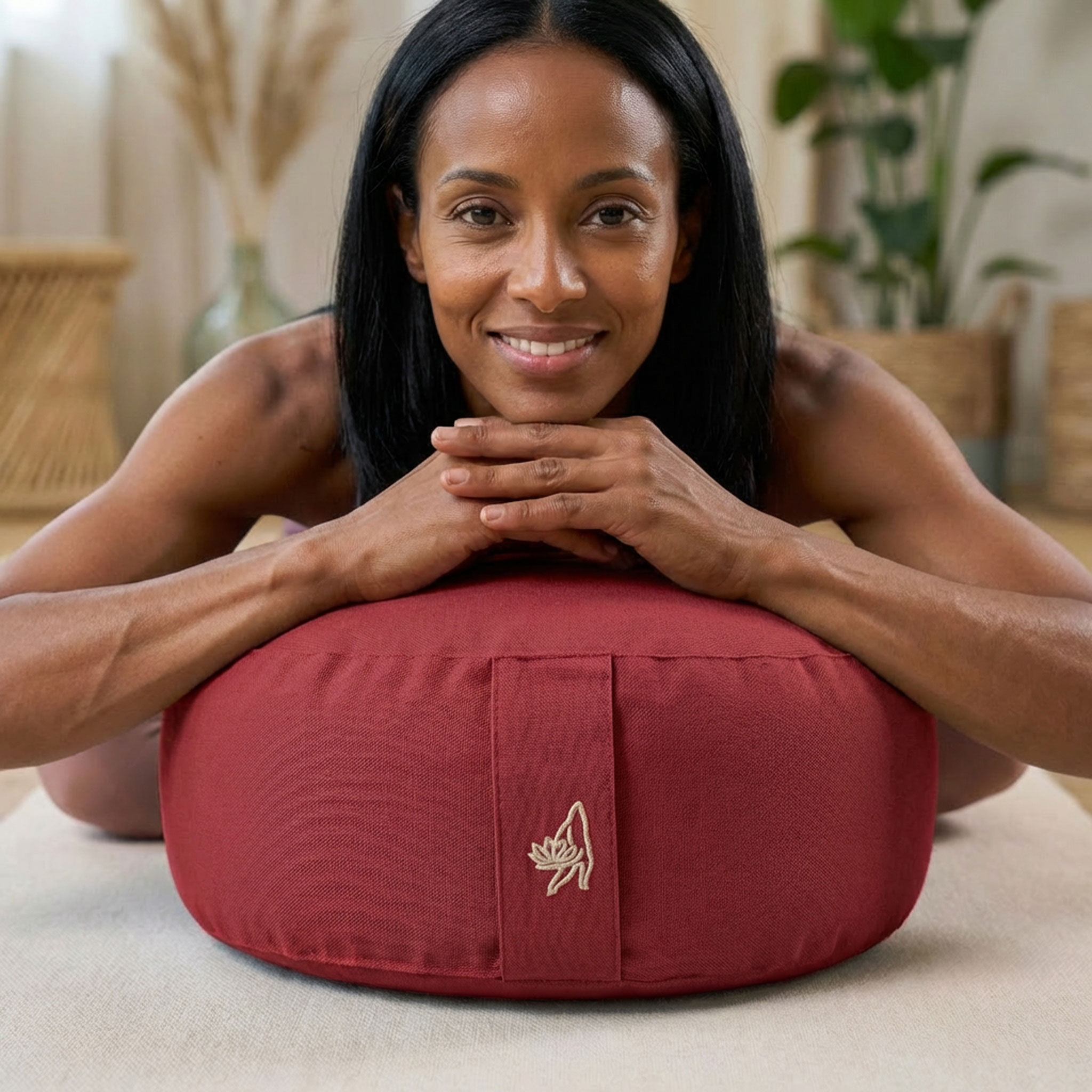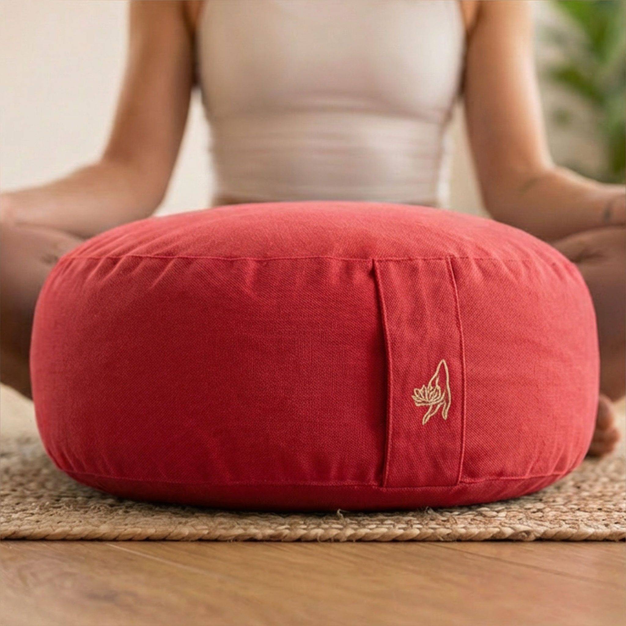 Das Yogakissen in Rot steht für Präsenz, Kraft und Erdung. In der Meditation erinnert diese Farbe zugleich daran, für einen Moment alle
