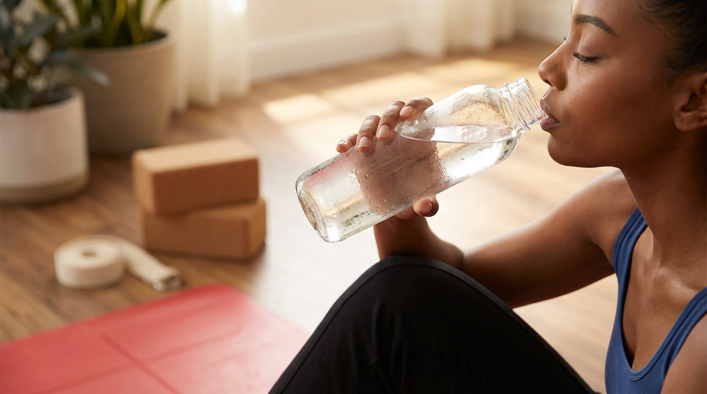 Nach einer schweißtreibenden Hot Yoga-Session ist die richtige Nachsorge für dich und deine Ausrüstung wichtig. Dein Körper freut sich über weitere Flüssigkeit. Denk daran, weiterhin ausreichend Wasser oder Elektrolytgetränke zu dir zu nehmen, um deinen Flüssigkeitshaushalt wieder ins Gleichgewicht zu bringen.