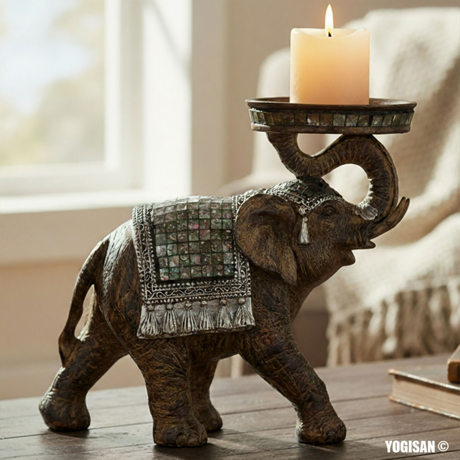 Der Indische Elefant mit Kerzenhalter ist nicht einfach nur ein Dekorationsobjekt – er steht für Harmonie, Wärme und die zeitlose Schönheit indischer Kultur. Mit seinem einzigartigen Design und seiner vielseitigen Einsetzbarkeit verleiht er jedem Raum das gewisse Etwas. Ob als geschmackvolle Ergänzung für das eigene Zuhause oder als besonderes Geschenk – dieser Elefant bringt nicht nur Licht, sondern auch ein Stück Indien in dein Leben.