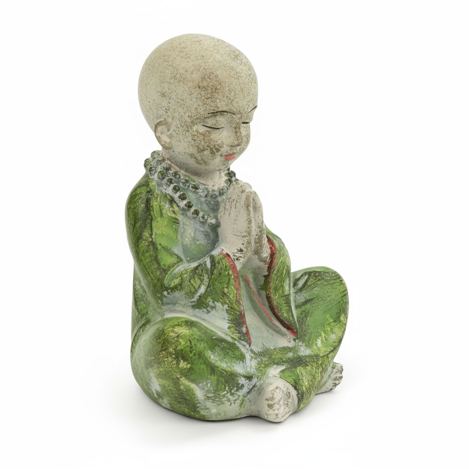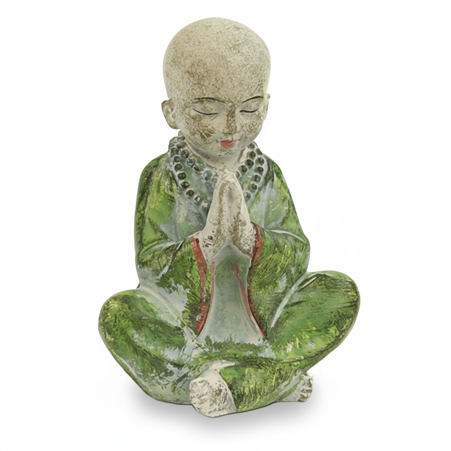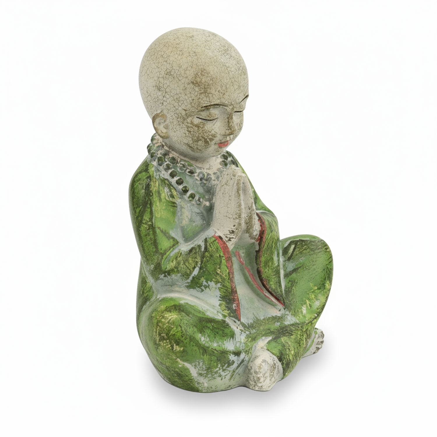 Der kleine Mönch „Prayer for Peace“ bringt einen stillen, freundlichen Akzent in deinen Alltag. Die Namaste-Geste steht für Frieden, Dank und Verbundenheit. Handbemalte Details – sanfte Gesichtszüge, mattes Grün des Gewands und die feine Mala – machen jede Figur zu einem besonderen Blickfang.
