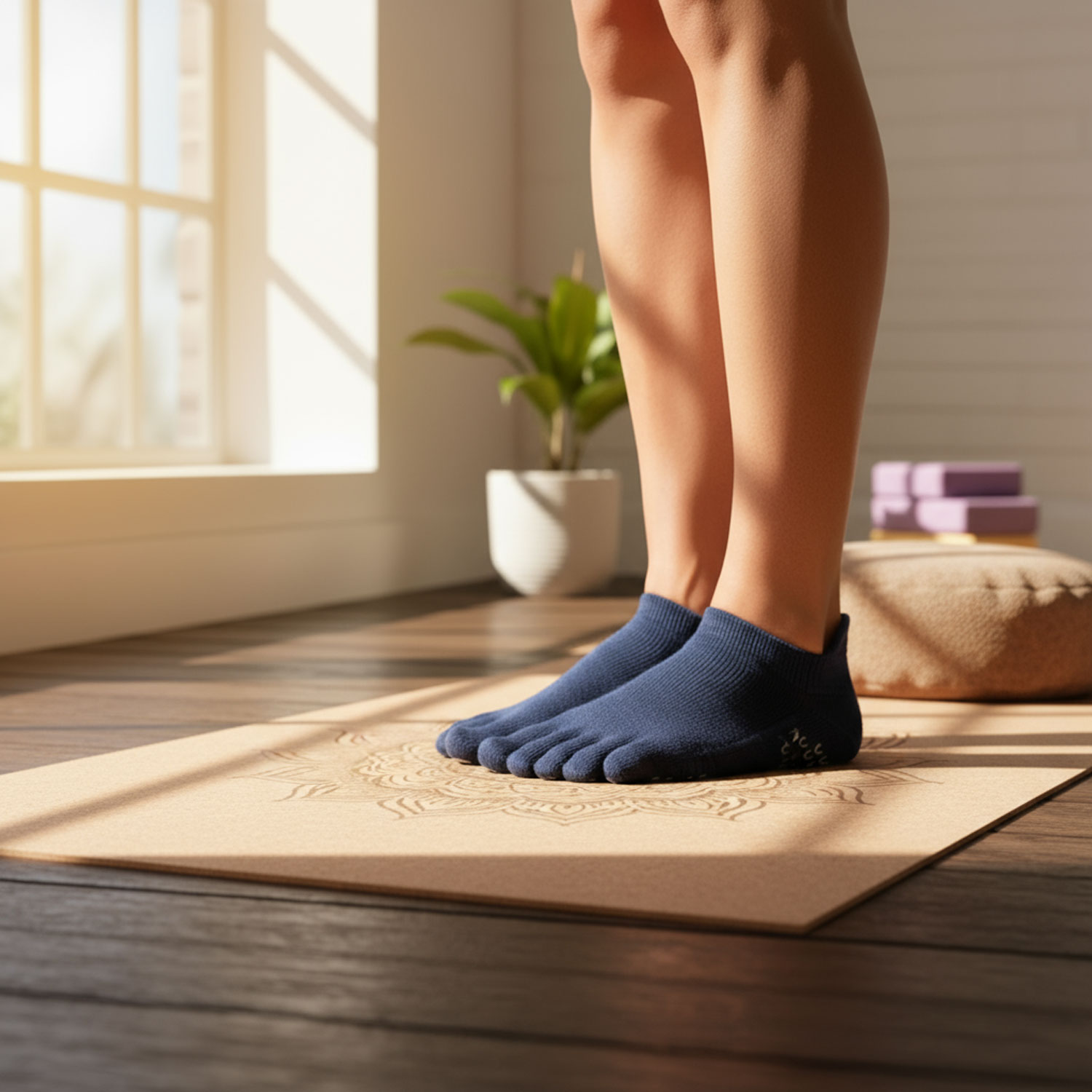Mit den Indigo ABS Socken trittst du sicher auf. Die Noppen geben dir Halt, die Zehen bewegen sich frei – jede Asana fühlt sich stabil und zugleich leicht an.
