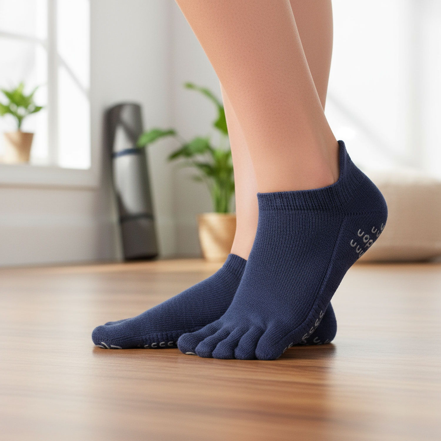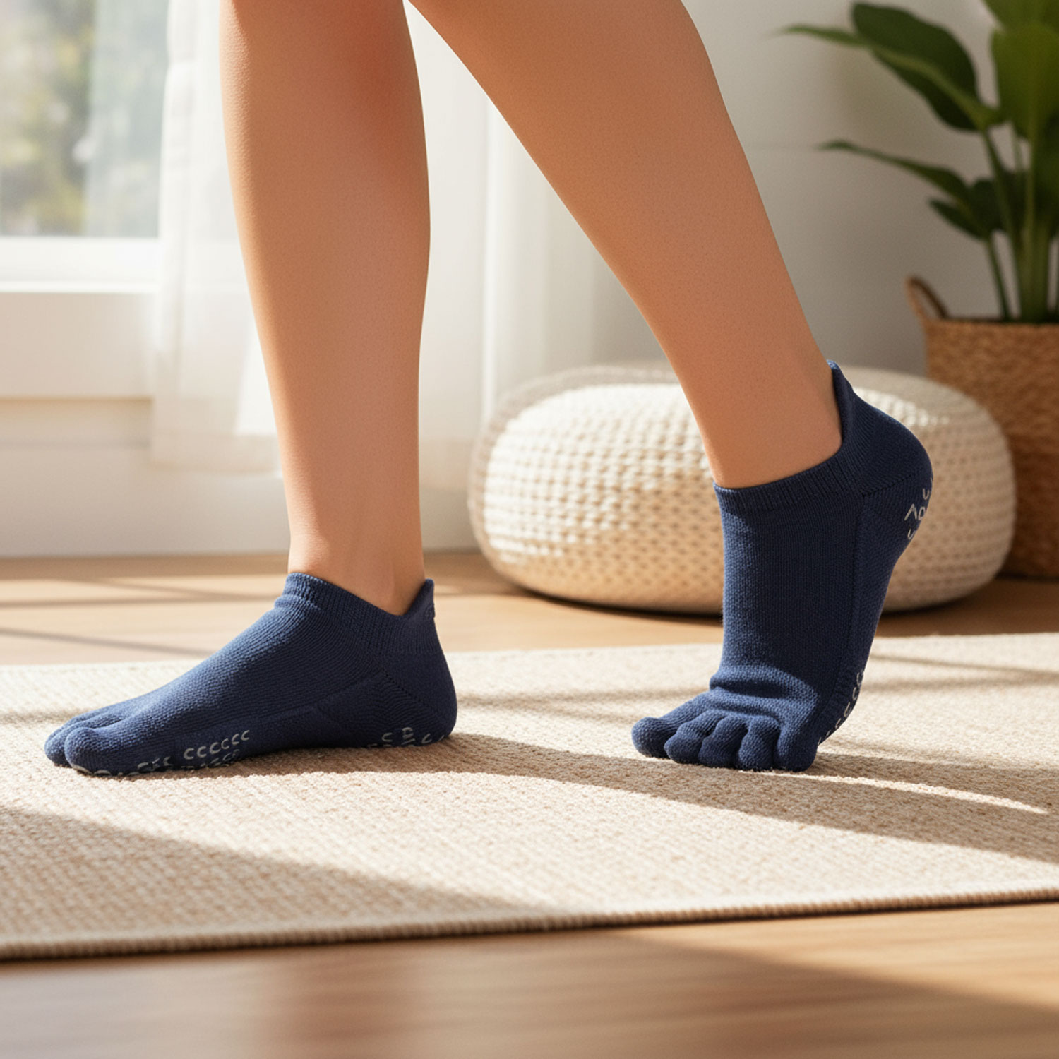 Knitido Pilates Socken ABS SORA Indigo (Gr. 35–38) – rutschfeste Zehensocken