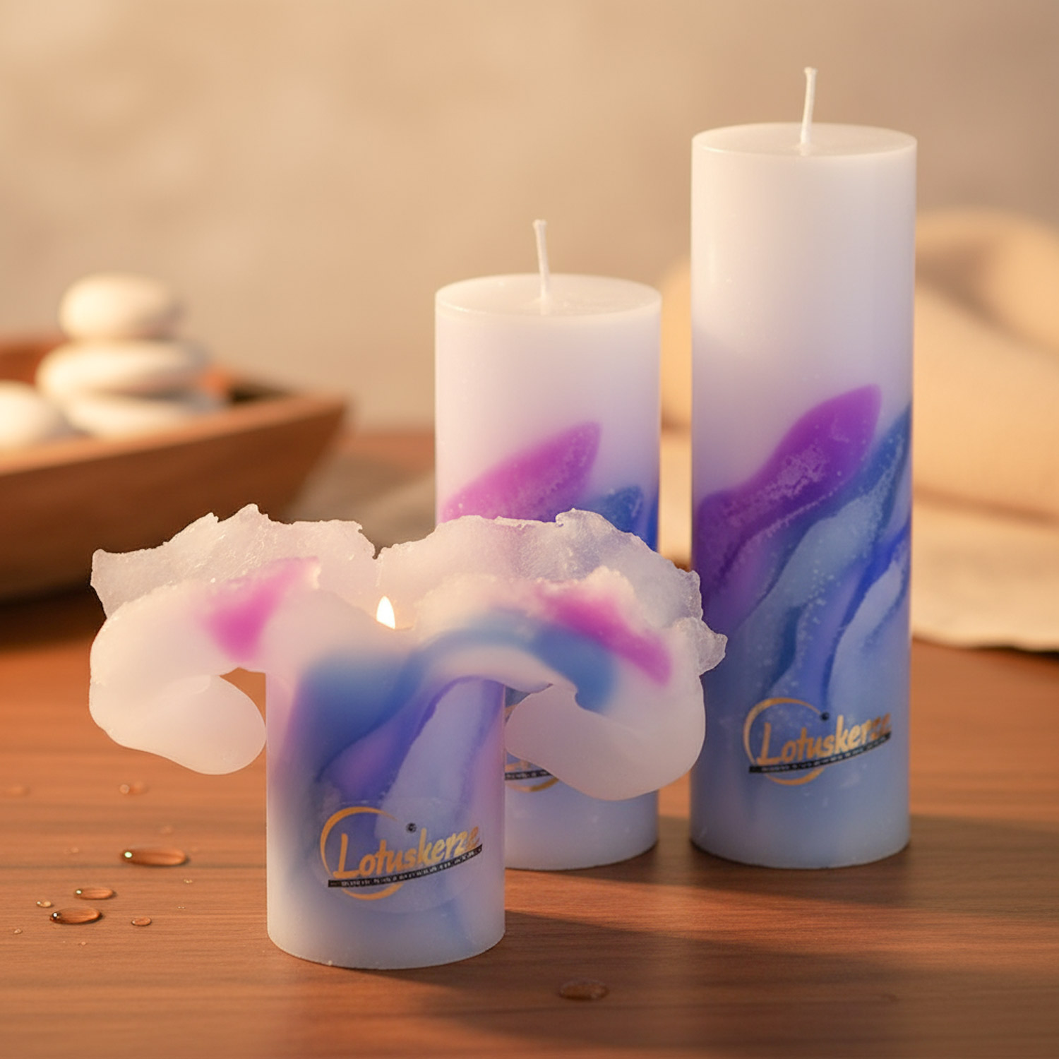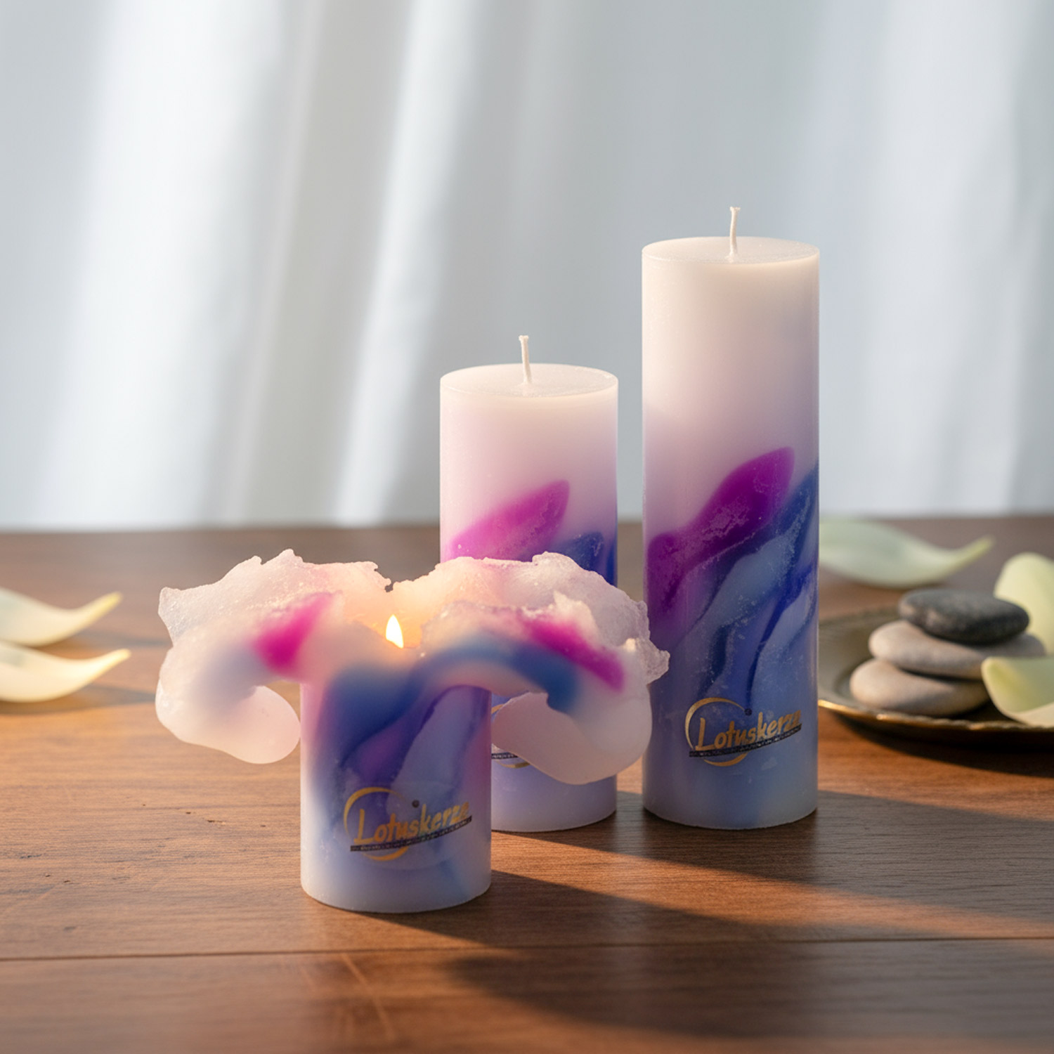 Mit viel Liebe und hochwertigen Materialien wird die Lotuskerze Art Blue Passion 23cm x Ø 7cm in Handarbeit gefertigt. Sie vereint Funktionalität und Kunst. Eine nachhaltige Wahl für Dein Zuhause oder als Geschenk.
