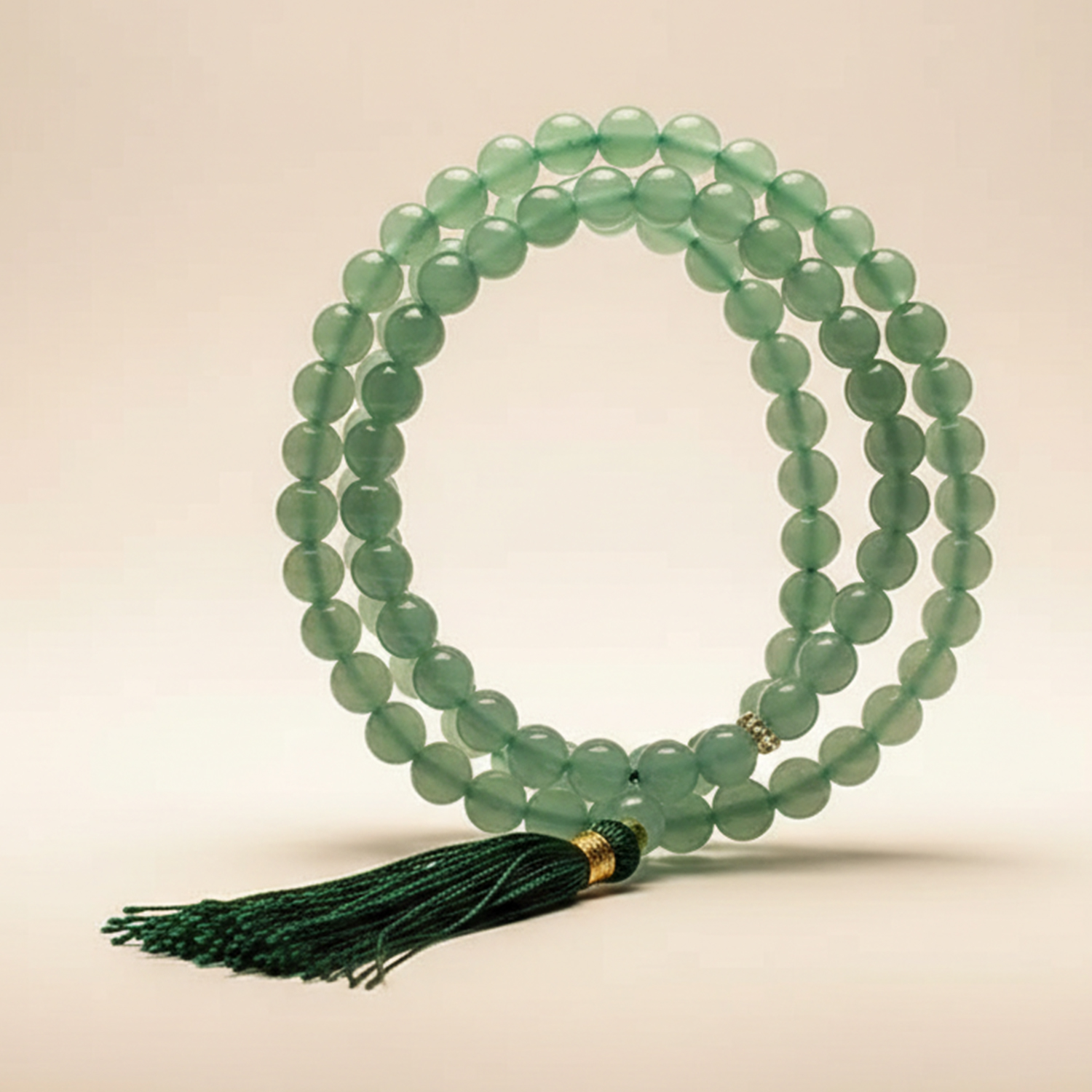 Aventurin wird seit Jahrhunderten für seine ruhige Präsenz geschätzt. In der Mala Gebetskette Aventurin 108 Perlen zeigt sich dieser Edelstein in seiner ganzen Schönheit. Die sanft schimmernden Grünnuancen wirken ausgleichend und fördern ein Gefühl von Klarheit. Viele Anwender empfinden Aventurin als Stein, der Ruhe und Offenheit unterstützt – eine wertvolle Qualität für Meditation, Affirmationen oder stilles Rezitieren. Durch die gleichmäßige Reihenfolge der Perlen entsteht ein fließendes Gefühl, das den meditativen Ablauf angenehm strukturiert.