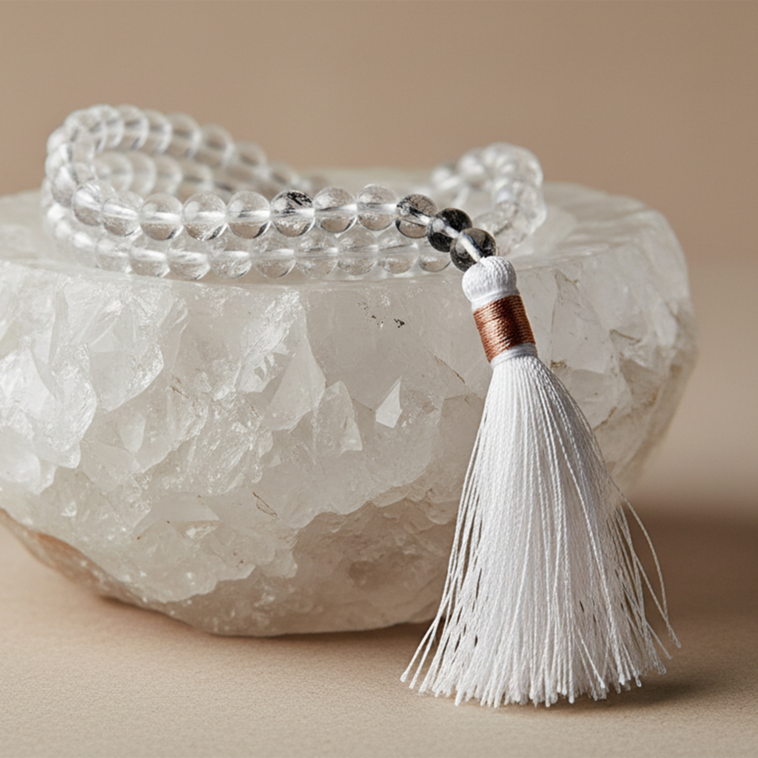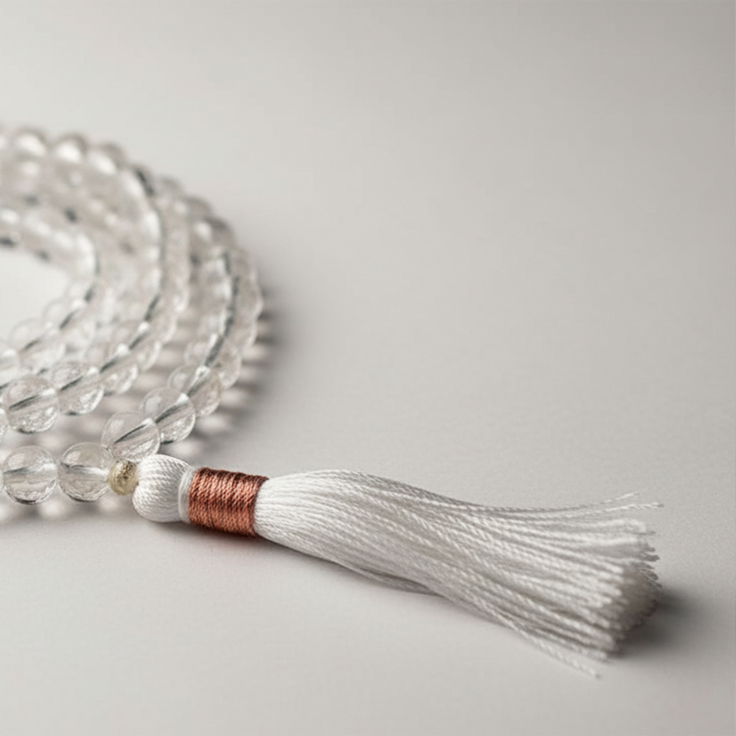 Diese Mala vereint traditionelle Fertigung mit der sanften, klaren Energie des Bergkristalls und wird so zu einem wertvollen Begleiter für alle, die ihre spirituelle Praxis vertiefen und bewusster leben möchten.