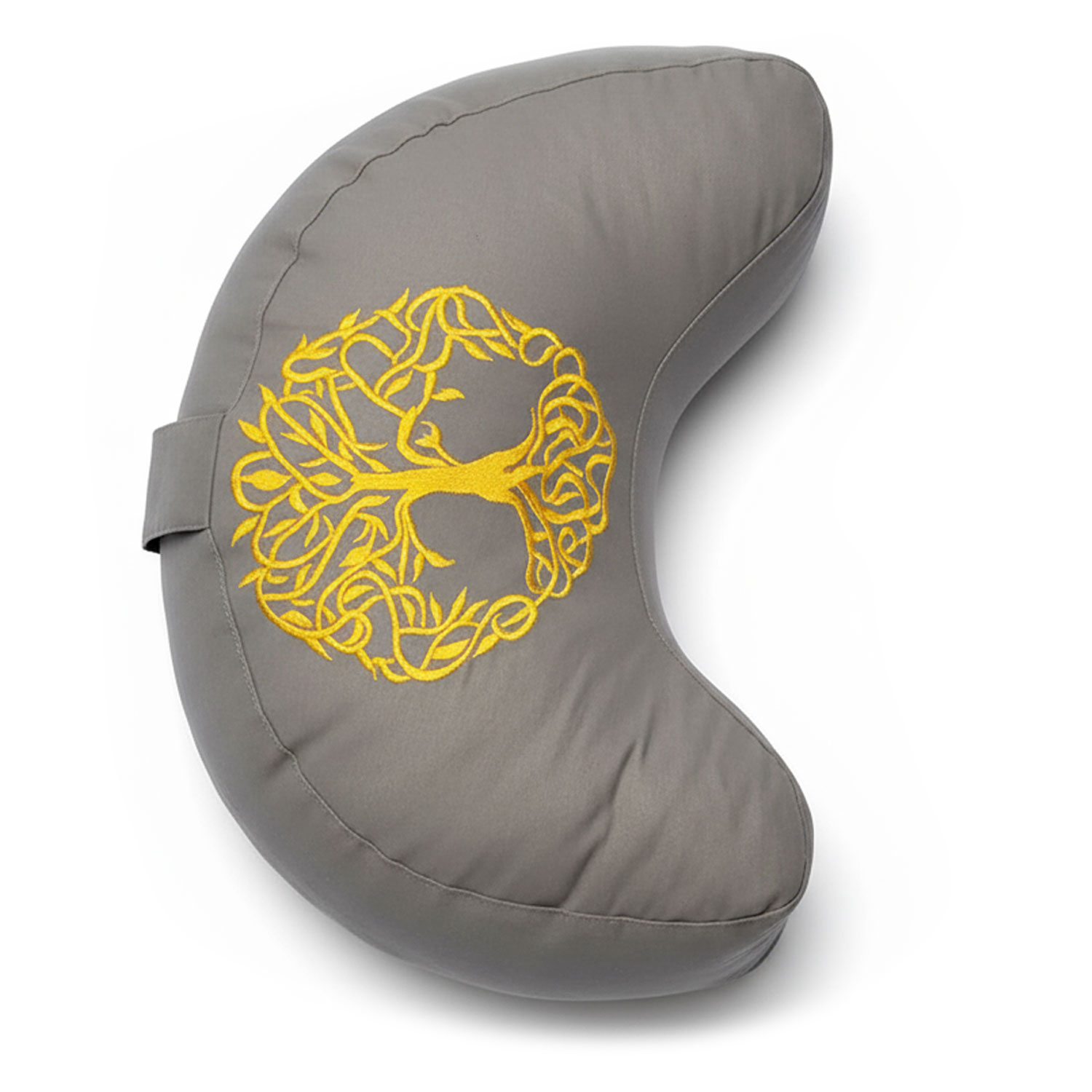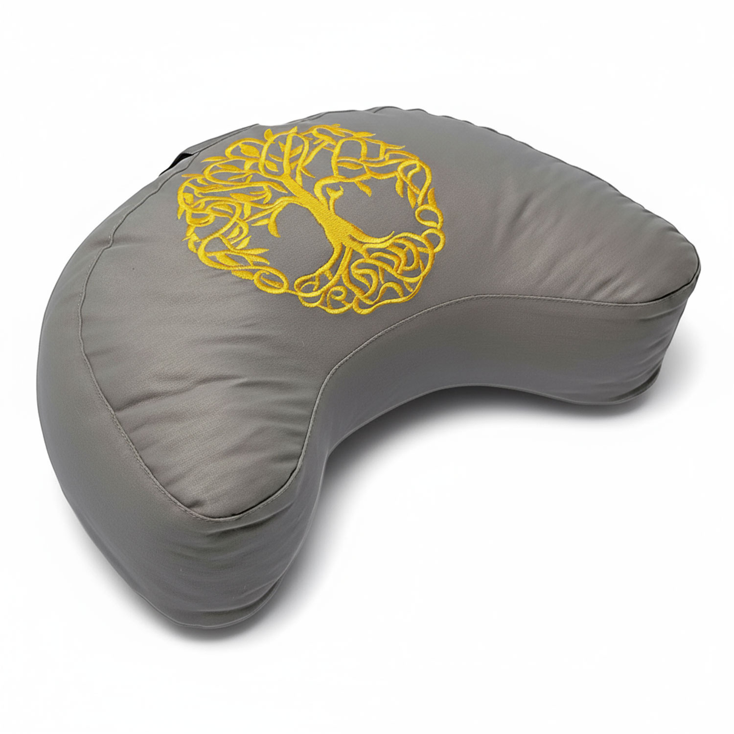 Halbmond Yogakissen „Lebensbaum“ – Grün, Bio-Baumwolle