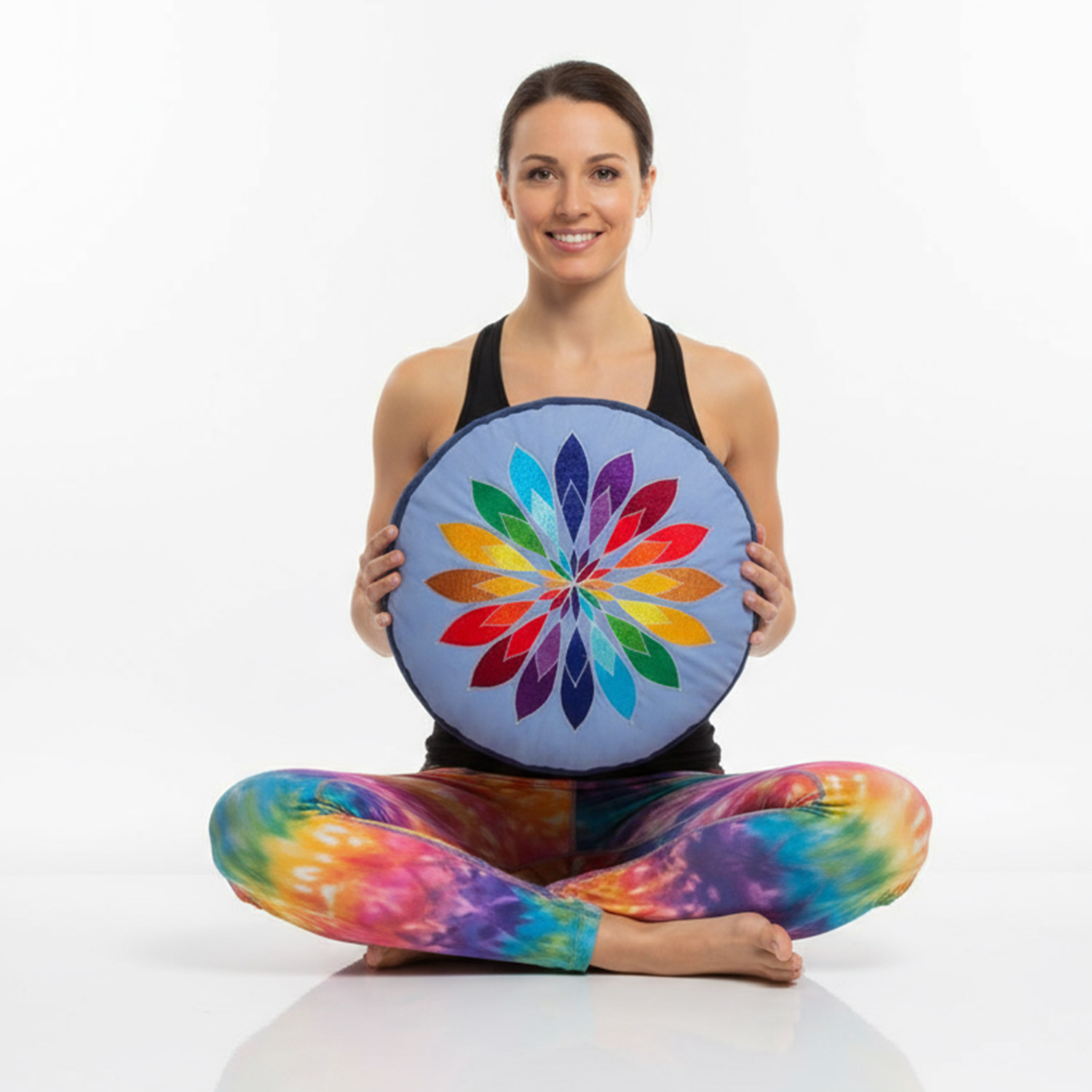 Unser Yoga- und Meditationskissen mit bunter Mandala-Stickerei und gemütlicher Naturfüllung bietet alles, was du für deine Meditation brauchst. Das Meditationskissen Mandala in Blau lädt dich ein, deinen neuen Lieblingsplatz für Yoga und Achtsamkeit zu entdecken.