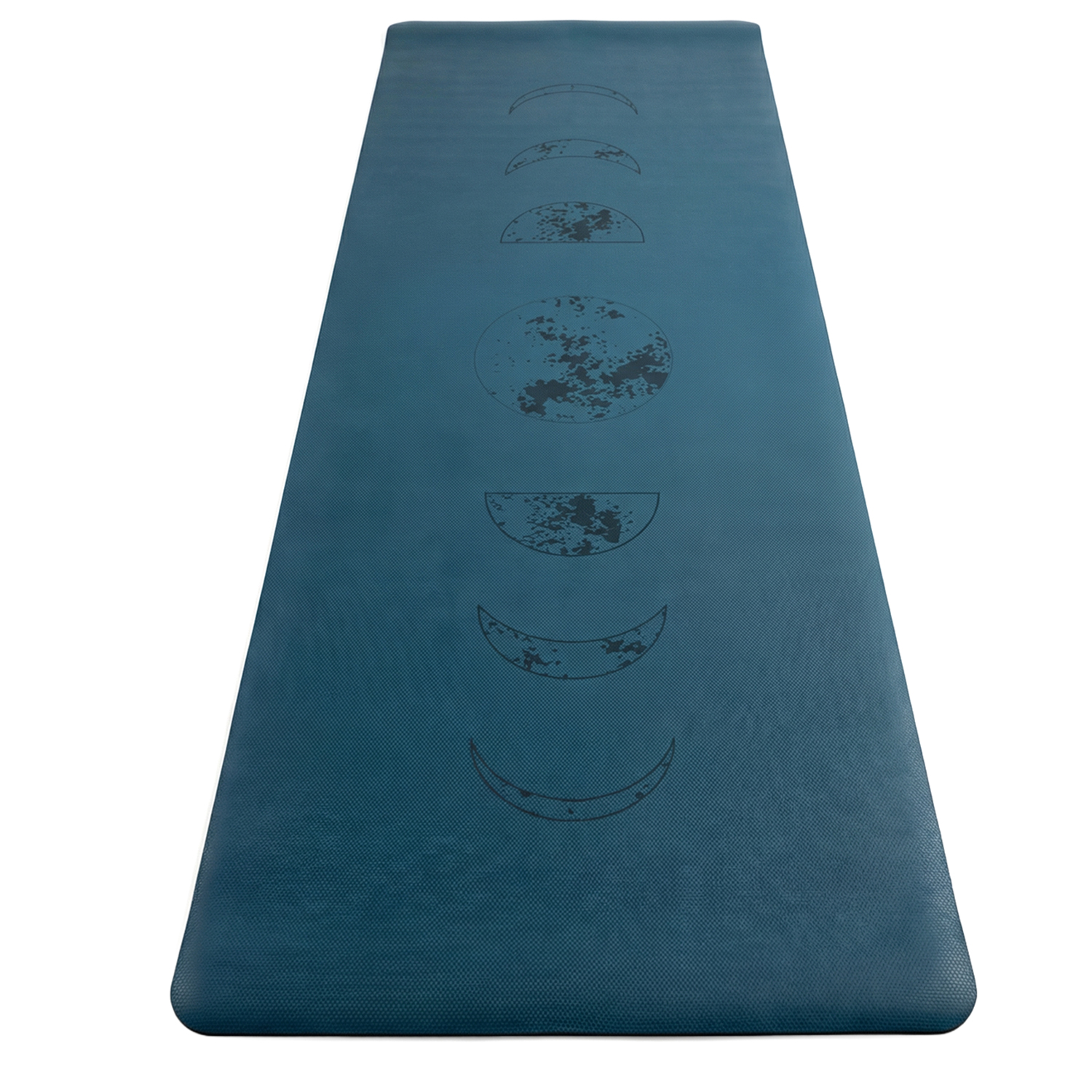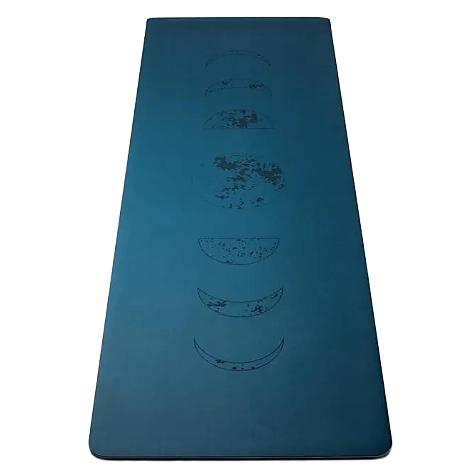 Premium Naturkautschuk-PU-Yogamatte Mondphasen Petrol – Stabil, rutschfest und alltagstauglich