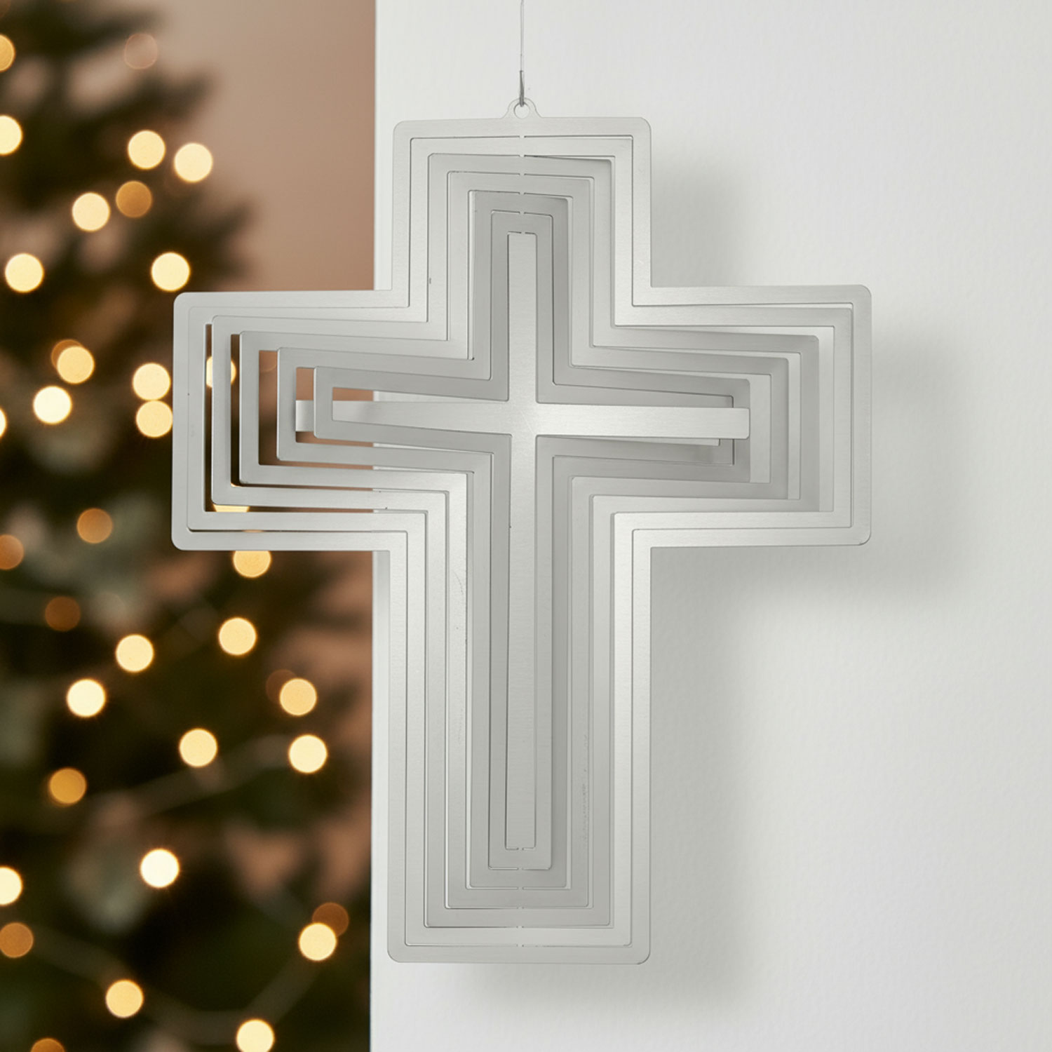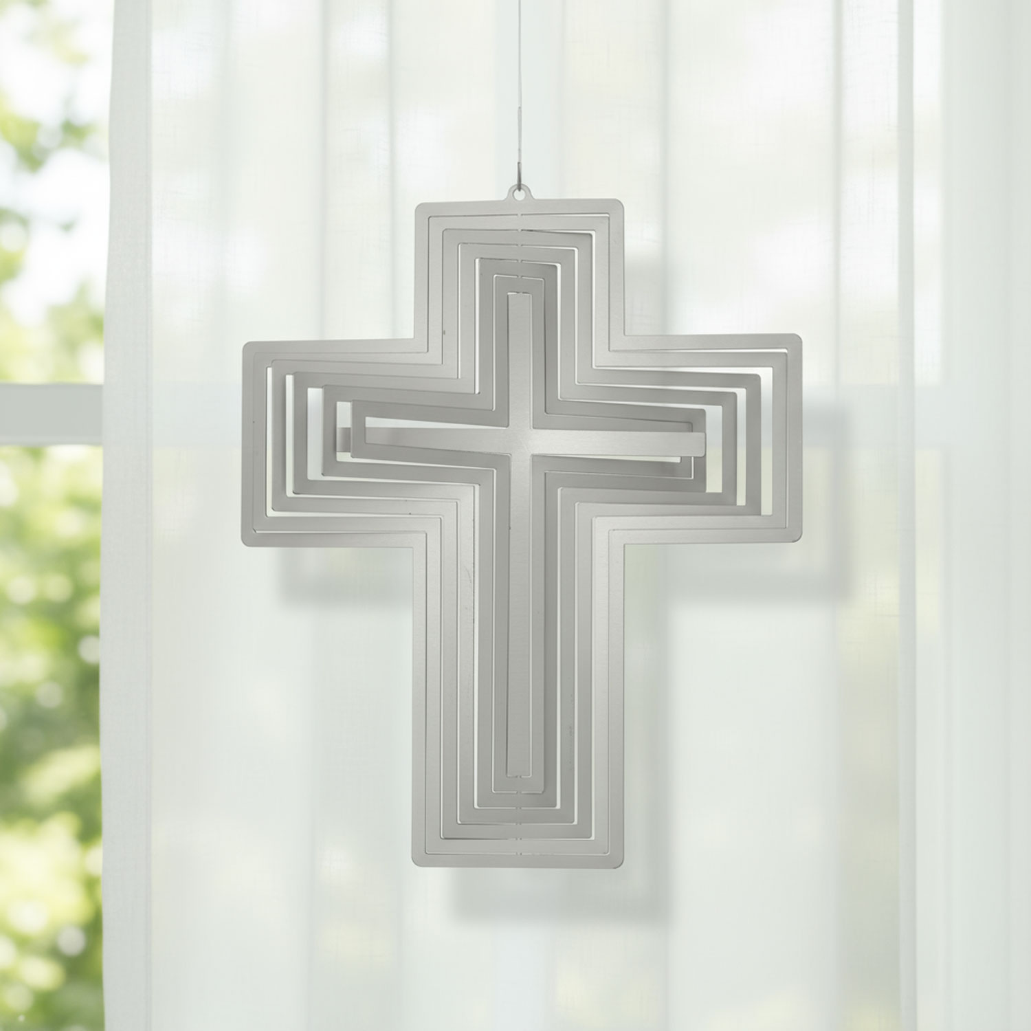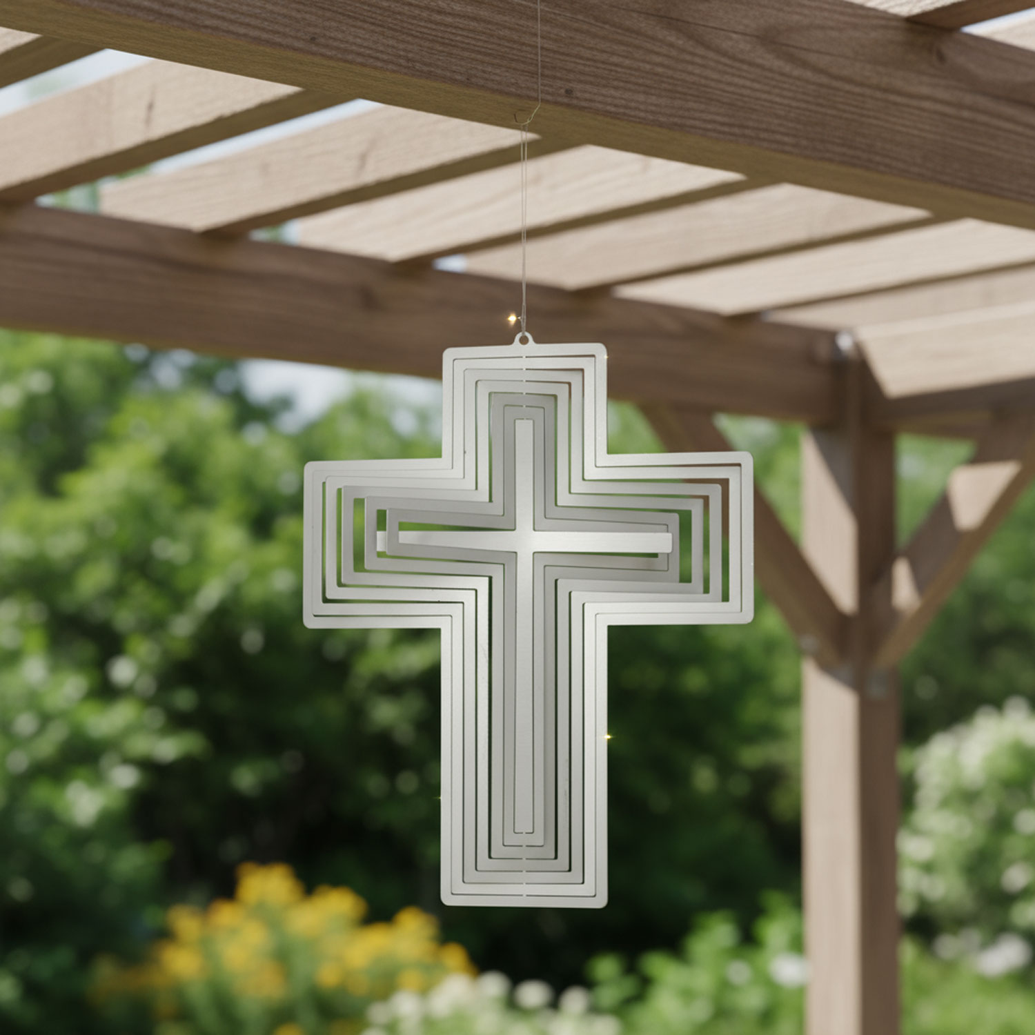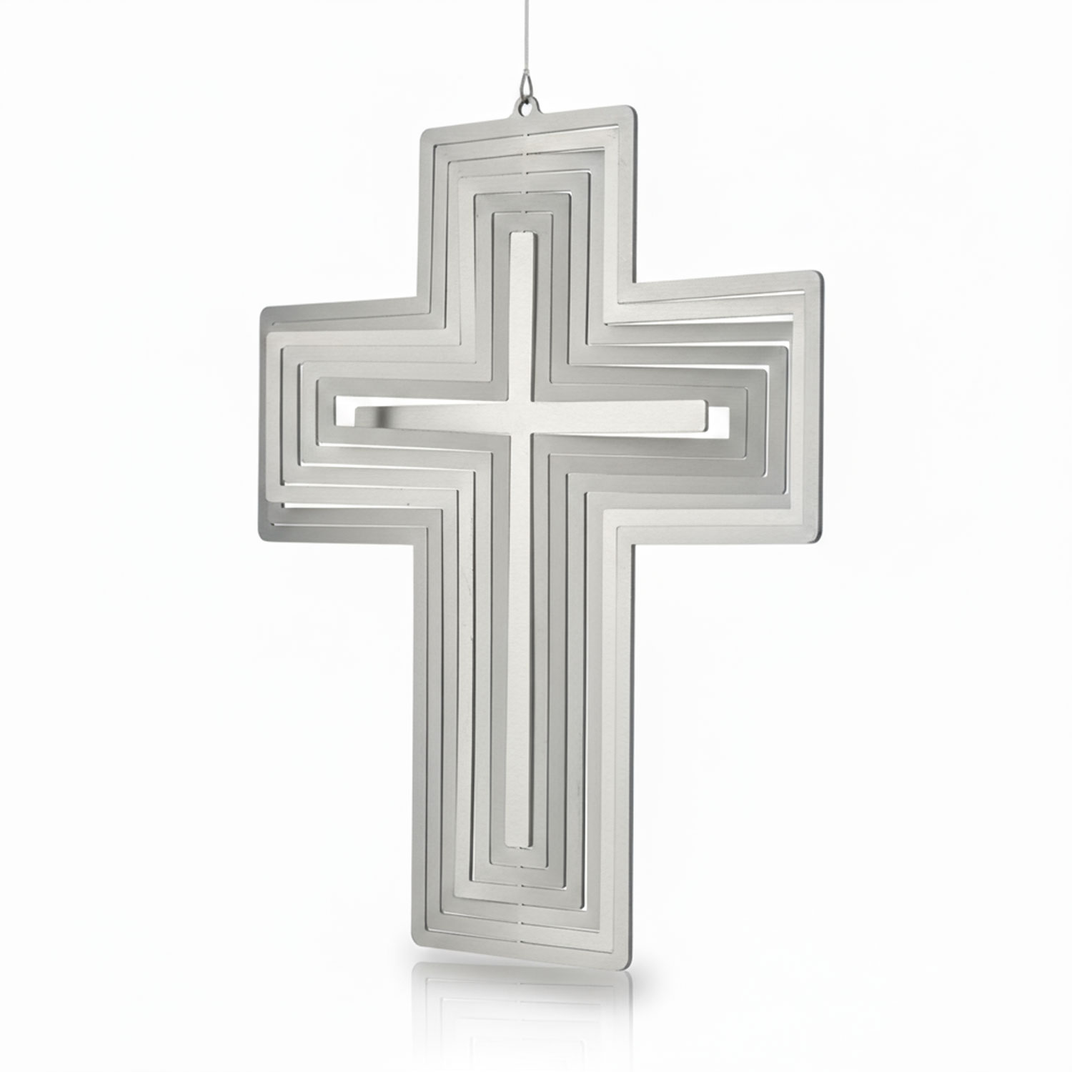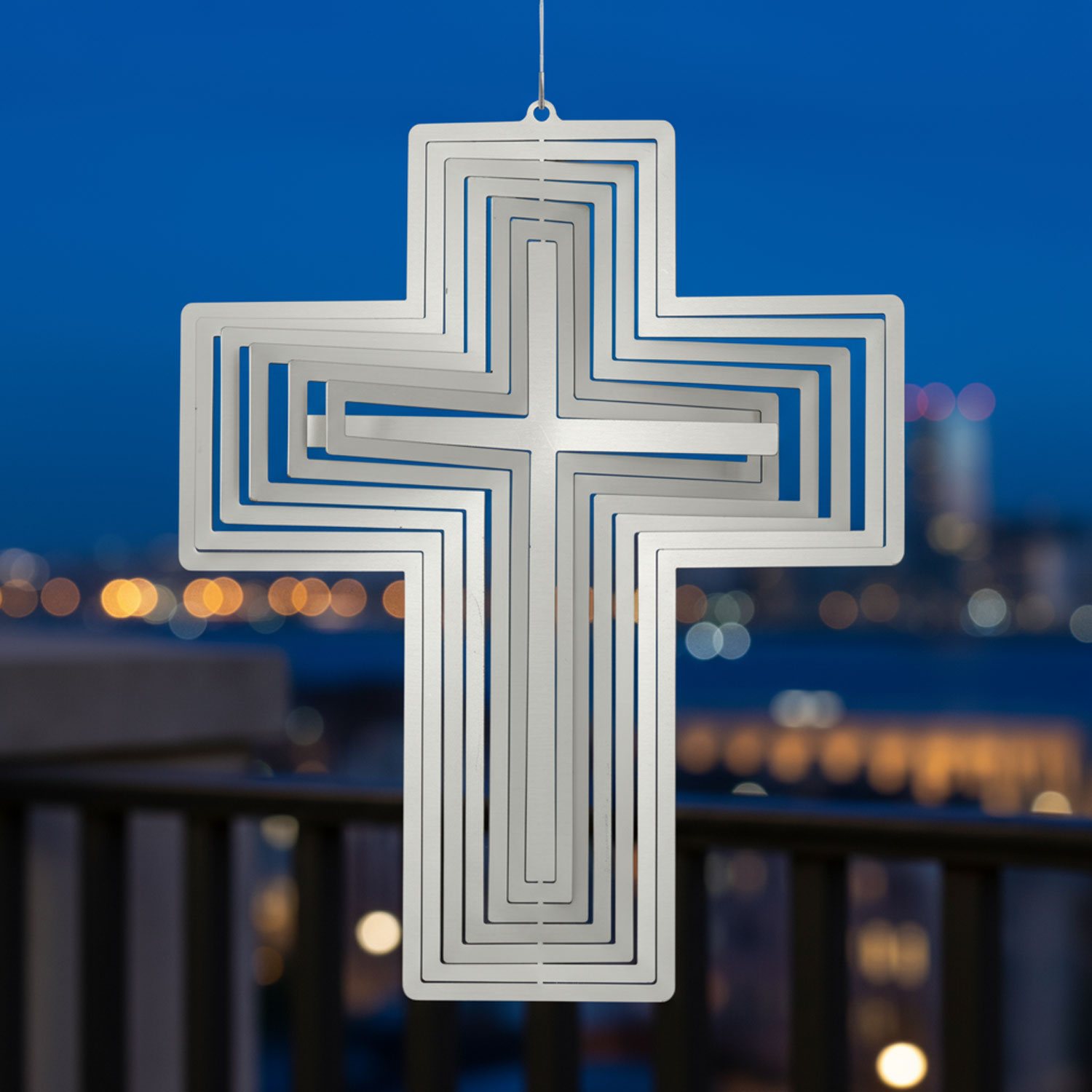 - Hochwertiges Edelstahl-Windspiel in Kreuz-Design