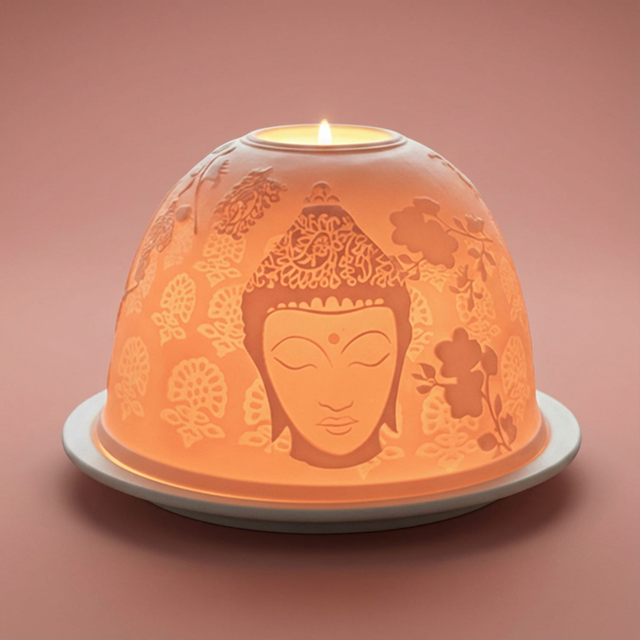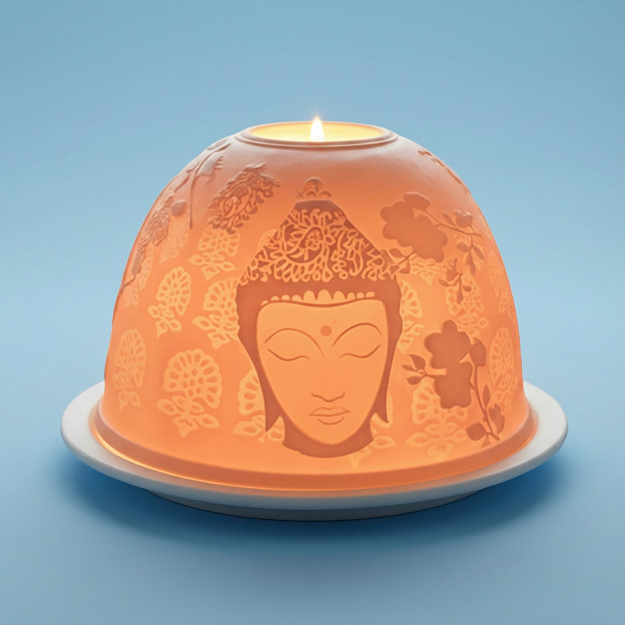Beim Anzünden eines Teelichts entstehen faszinierende Lichtspiele, die die filigranen Details besonders hervorheben – ideal für entspannte Stunden, Yoga oder Meditation.