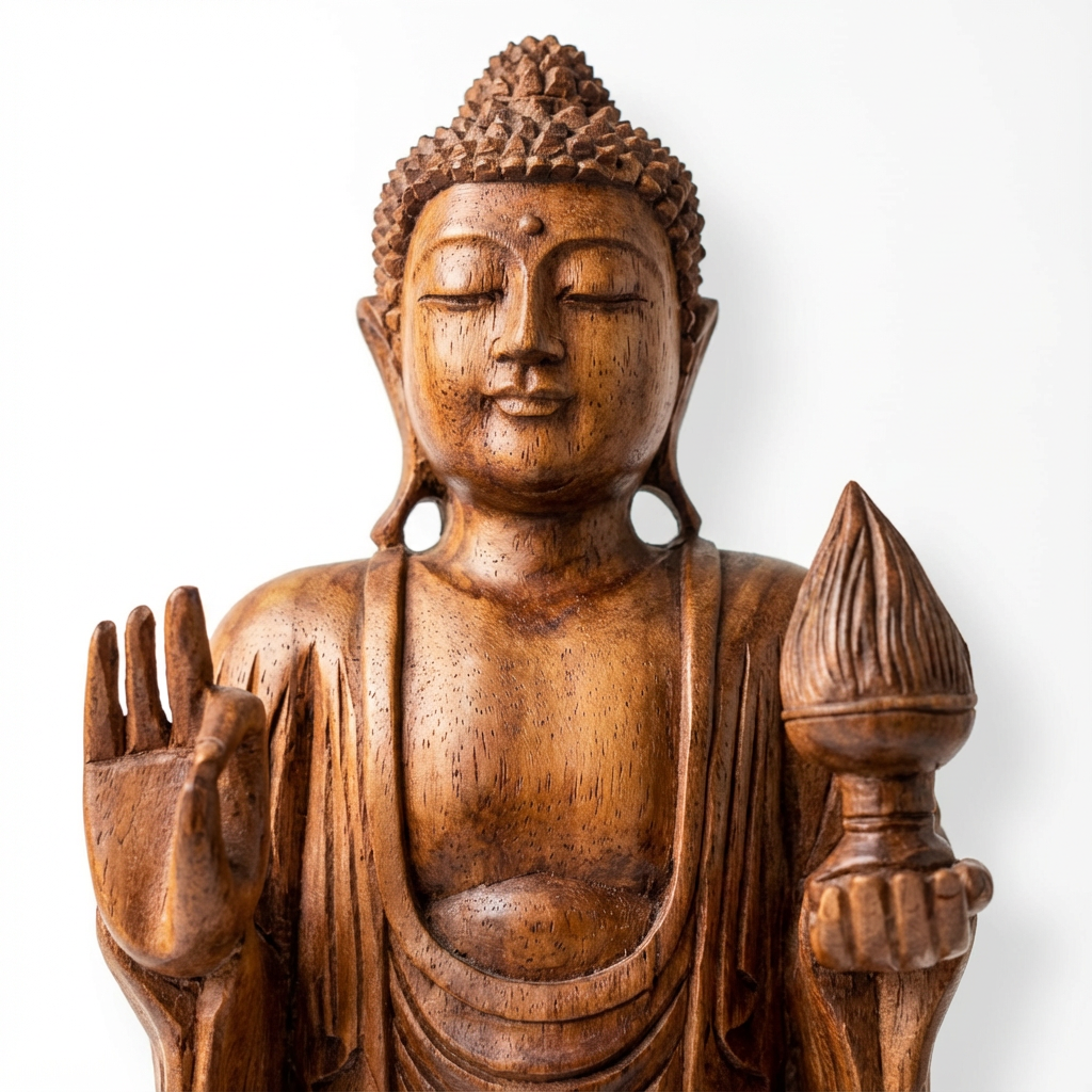 Finde deine innere Ruhe: Der stehende Buddha aus Suarholz