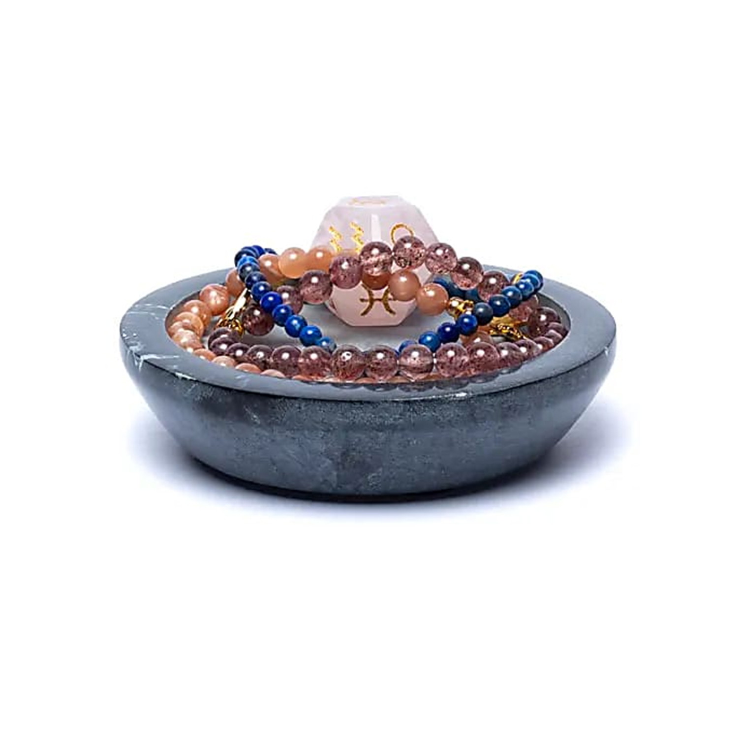 - Natürliche Optik: Feine Steinmaserung in Grau – jedes Stück ein Unikat, das sich unauffällig in Wohn- und Meditationsbereiche einfügt.