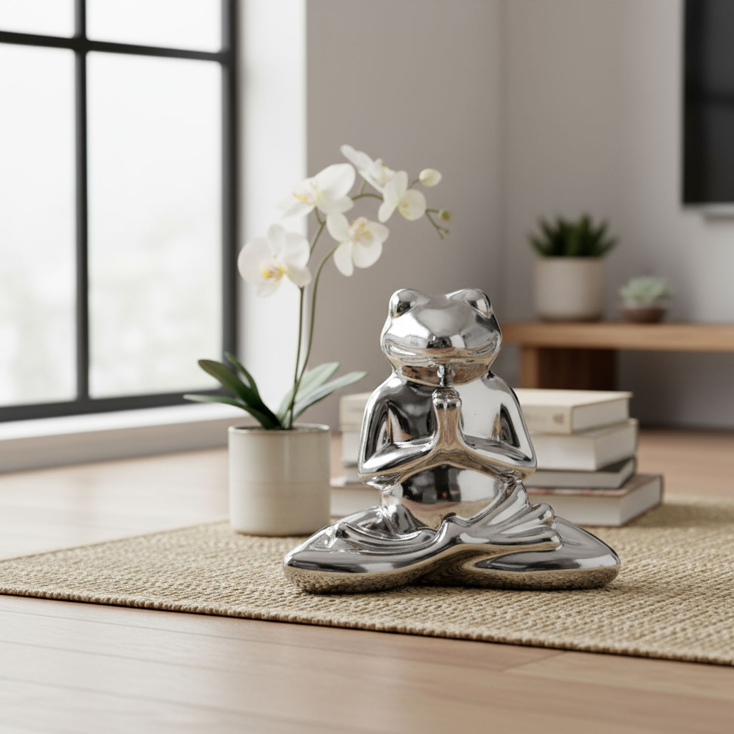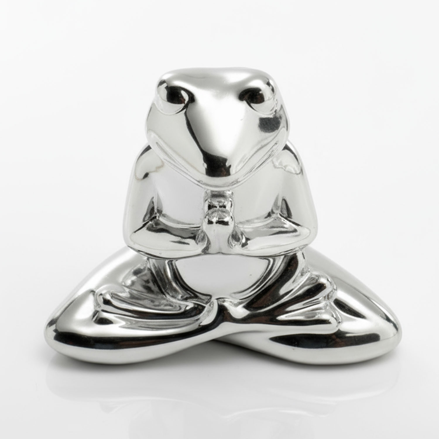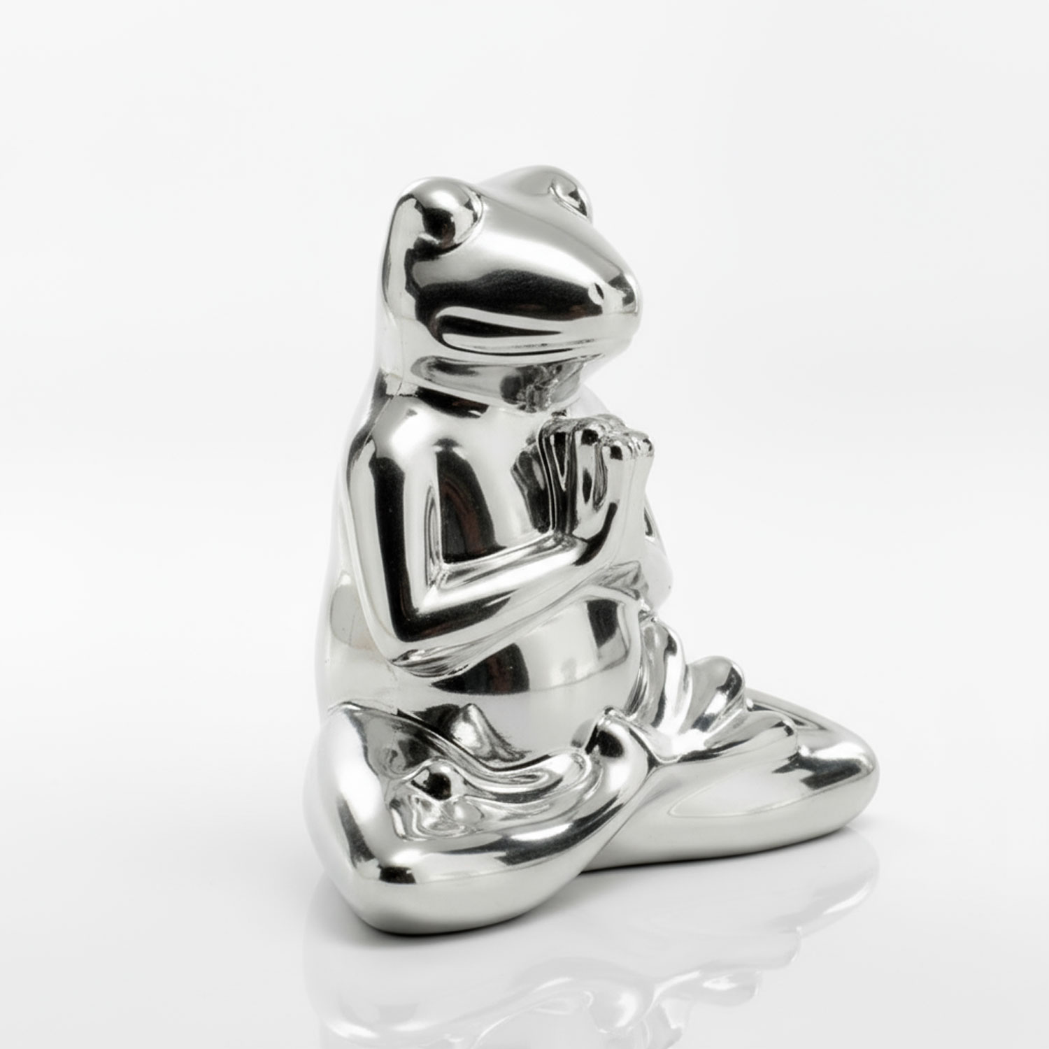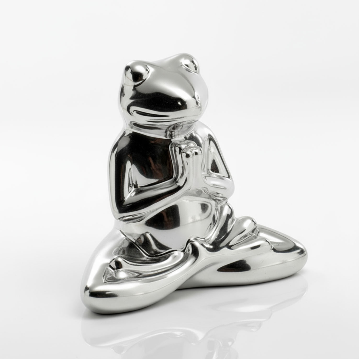Buddha Yoga Frosch Zen-Meditation in Silber aus Keramik