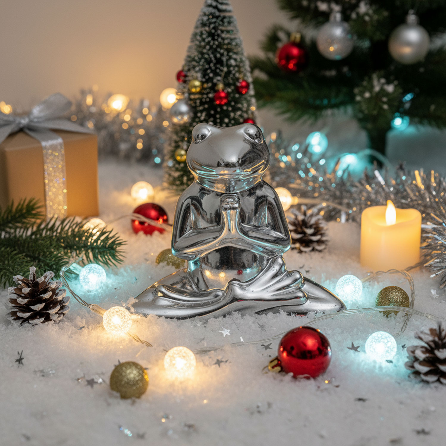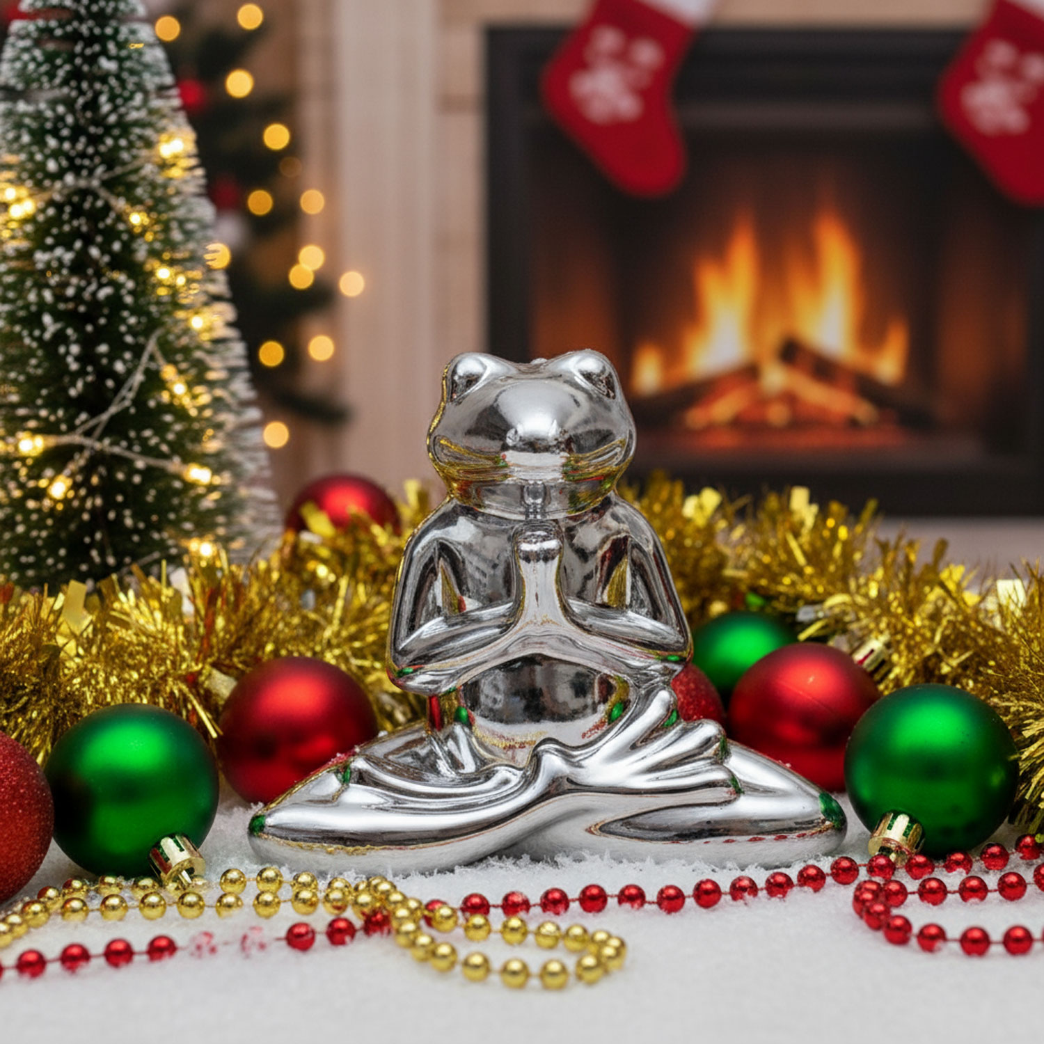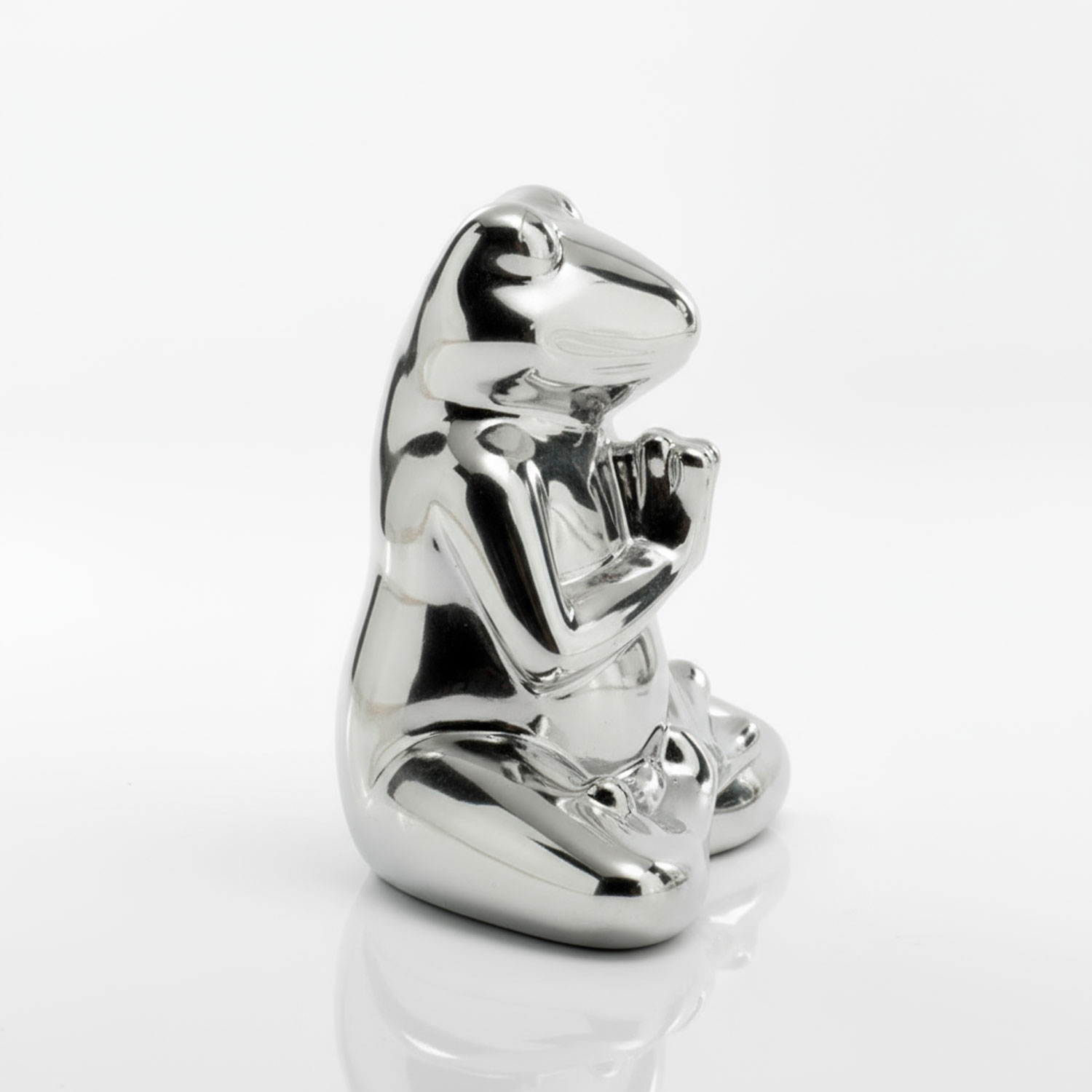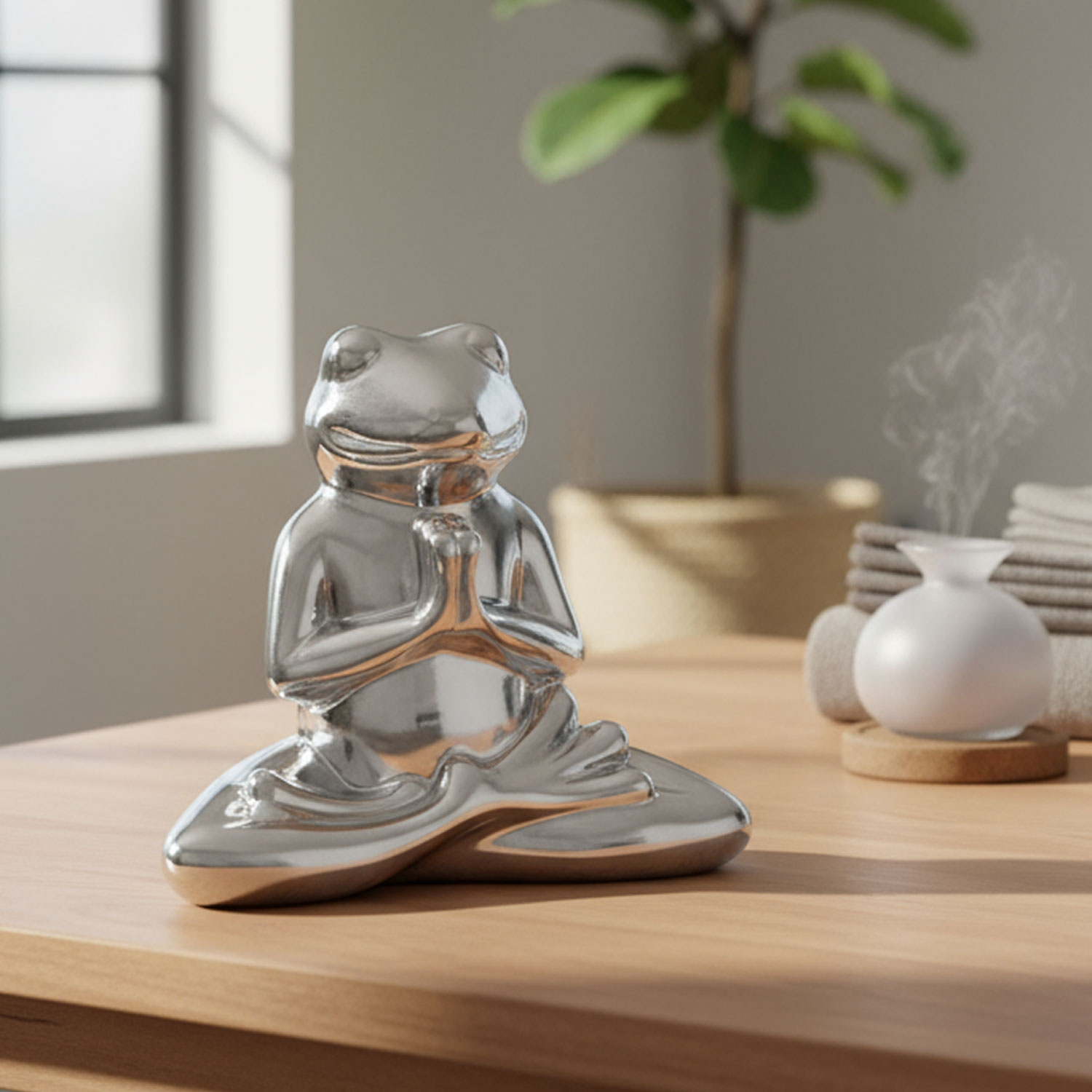 Buddha Yoga Frosch Zen-Meditation in Silber aus Keramik