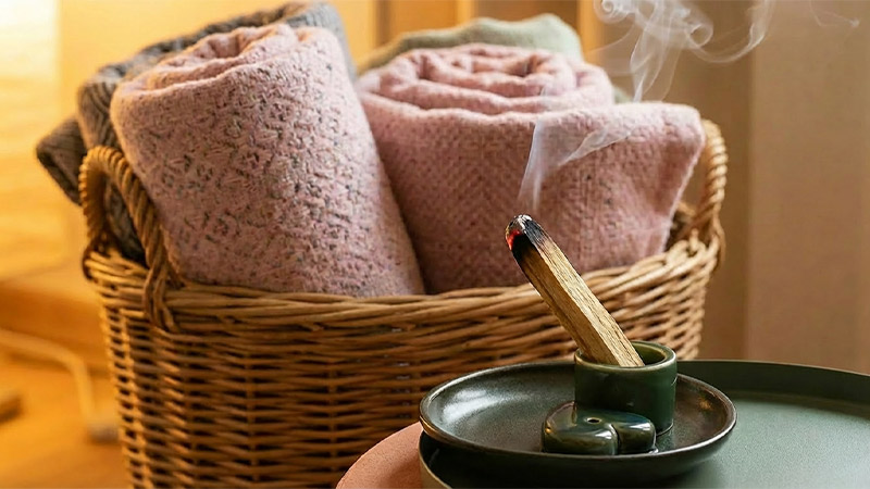 - Düfte: Ätherische Öle, natürliche Duftkerzen oder Palo Santo können deinen Raum energetisch reinigen und eine entspannende Stimmung erzeugen. Wähle Düfte, die dich erden oder beleben, je nach deinem Yoga-Stil.