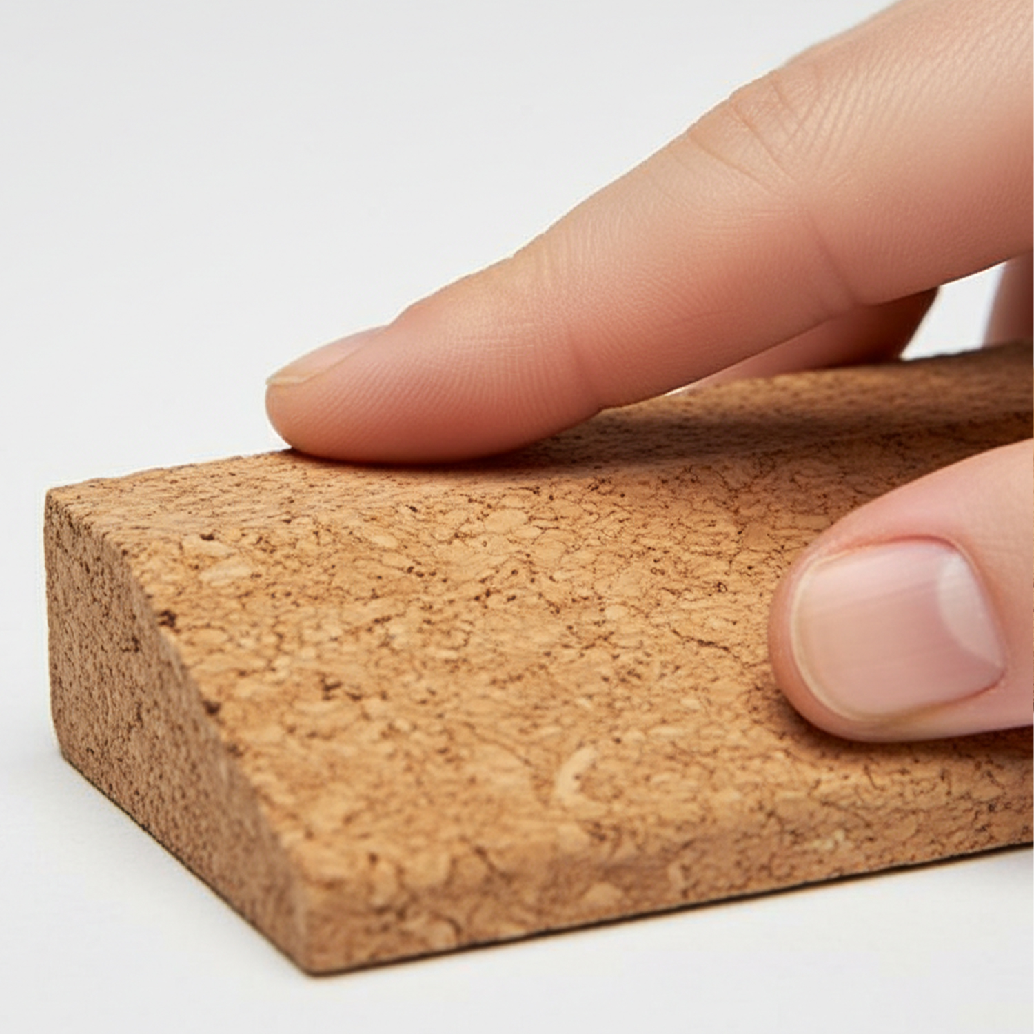 Der Yogablock in Keilform besteht aus Kork, einem natürlichen Material mit angenehmer Haptik. Die Oberfläche liegt angenehm in der Hand und bietet eine dezente Griffigkeit, die Bewegungsabläufe unterstützt. Da Kork eine feine Struktur besitzt, fühlt sich der Block sanft und gleichzeitig stabilisierend an. Durch seine Form und das Material eignet sich der Keil für Anwenderinnen und Anwender, die eine natürliche Unterstützung bevorzugen und Wert auf ein angenehmes Handling legen.