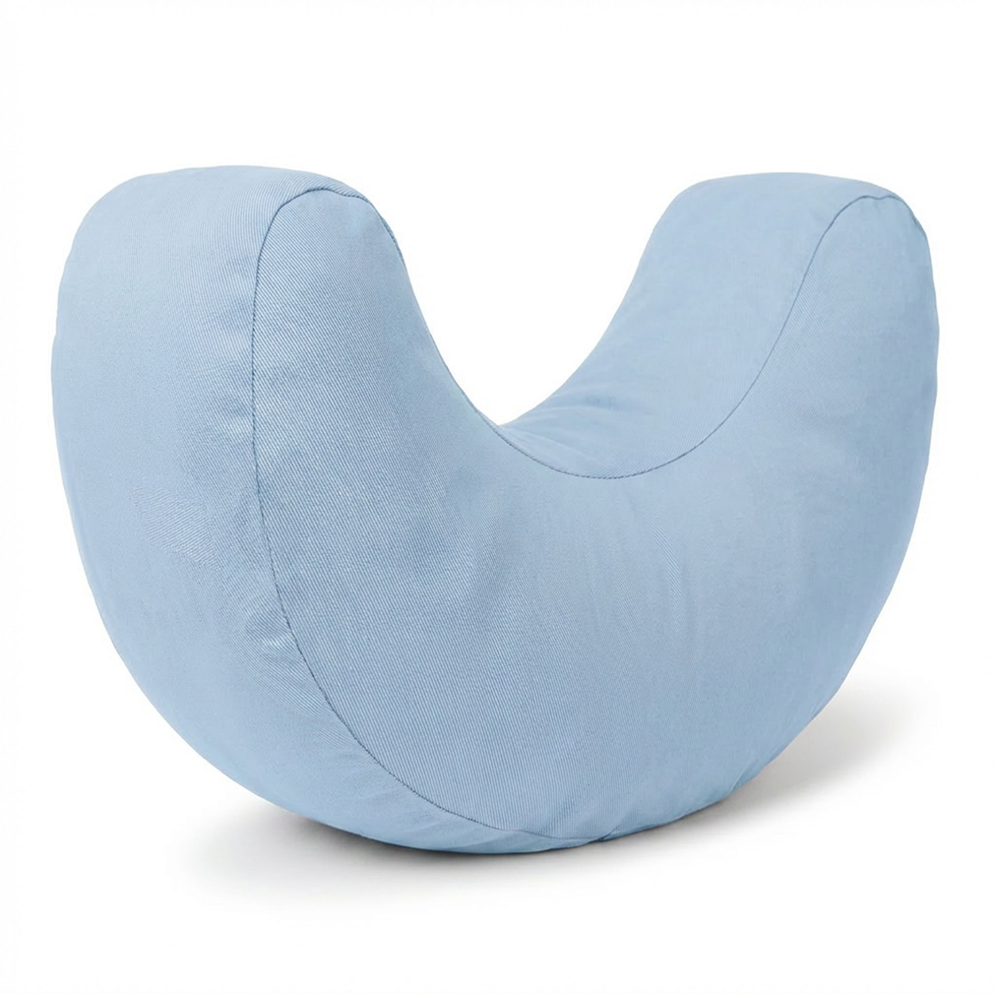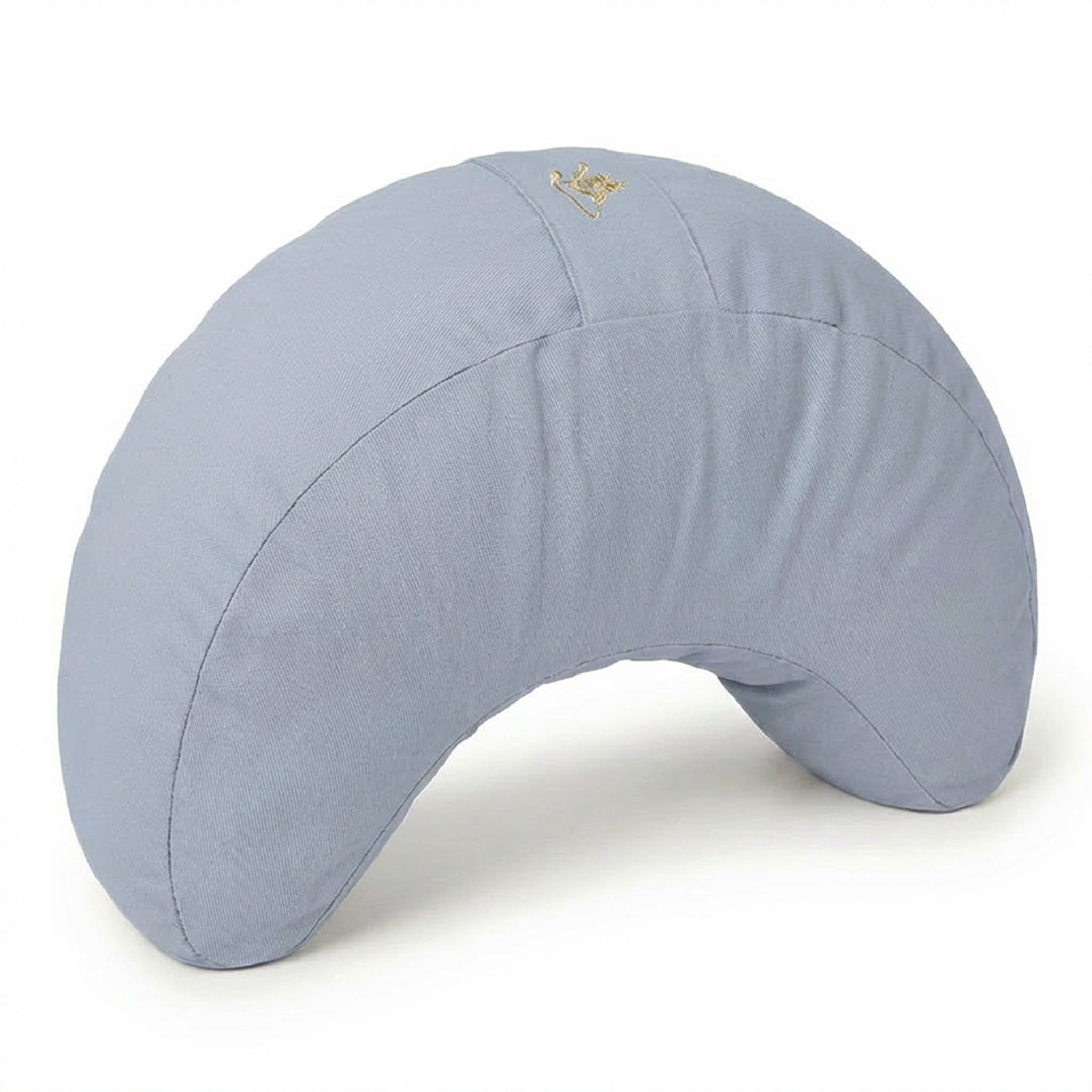 Die sanft geschwungene Halbmondform in angenehmem Hellblau bietet vielseitige Unterstützung. Der Oberstoff besteht aus gefärbter, GOTS-zertifizierter Bio-Baumwolle; sowohl Bezug als auch Inlett entsprechen den GOTS-Standards und sind zusätzlich nach OCS Blended zertifiziert.