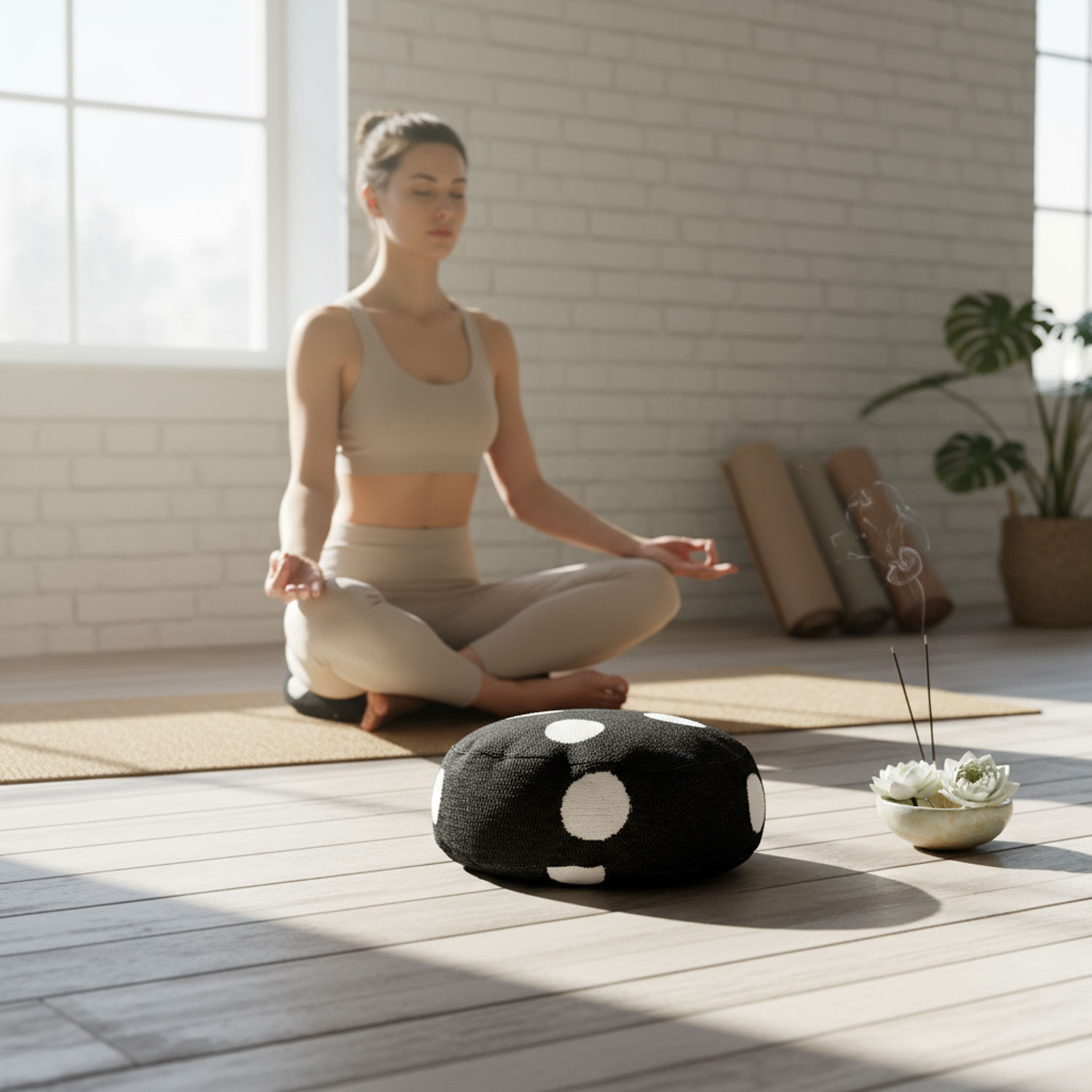 Ob als Unterstützung für Sitzmeditationen, als Hilfsmittel beim Yin Yoga oder als gemütliches Bodenkissen im Wohnzimmer – dein Yogakissen Polka Dots Black / Schwarz macht überall eine gute Figur. Es schenkt dir Stabilität und Leichtigkeit zugleich. Dank seines zeitlosen Looks kannst du es auch problemlos in deine Wohnraumeinrichtung integrieren. So wird aus einem reinen Yogaprodukt ein liebevolles Detail in deinem Zuhause.