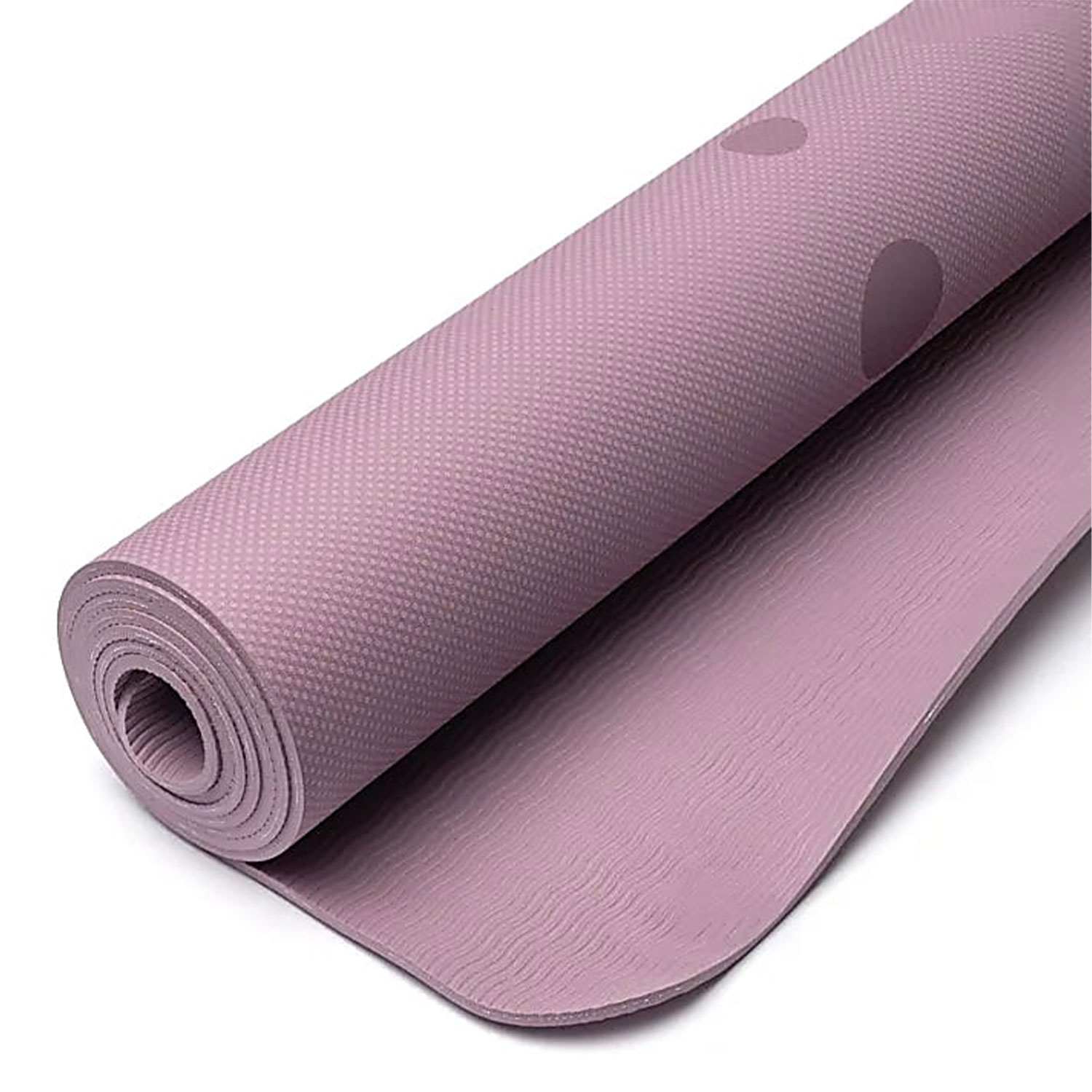 Diese Yoga-Matte besteht aus TPE, einem Material, das sich durch seine angenehme Haptik und eine gleichmäßige Oberfläche auszeichnet. Die Struktur ermöglicht eine sanfte Polsterung, wodurch Übungen komfortabel ausgeführt werden können. Die Matte liegt gleichmäßig auf dem Boden auf und bietet eine stabile Grundlage für verschiedene Yogastile. Durch die Beschaffenheit des Materials lässt sie sich leicht ausrollen und bleibt während der Praxis gut in Form. Die violette Farbgebung verleiht ihr eine dezente Optik, die harmonisch zur Gestaltung passt.